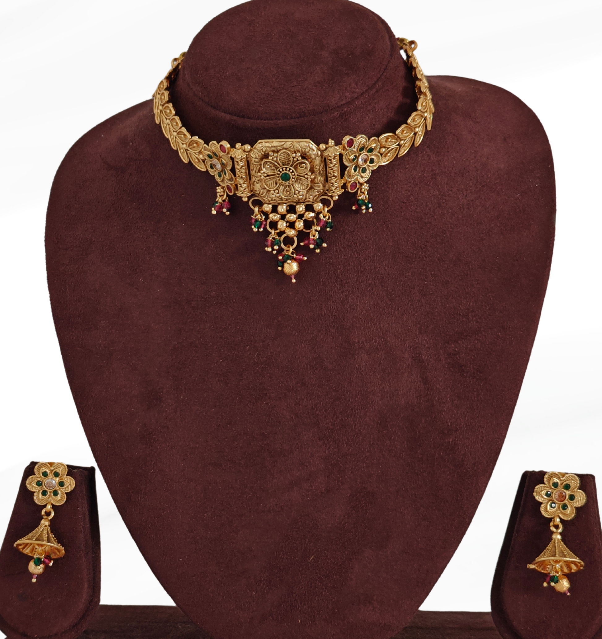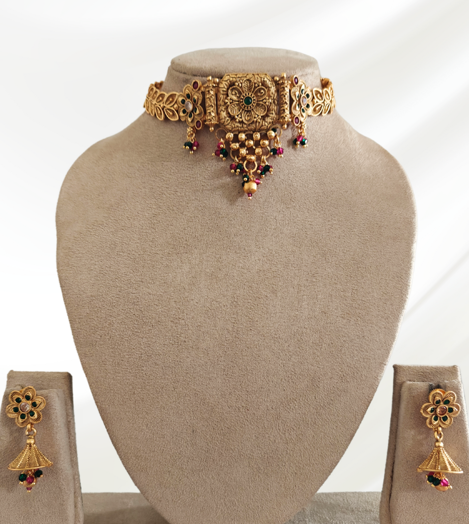 This elegant choker set with beautiful leaf design showcases timeless style. Perfect for adding glamour to your festive or special occasions, it's a must-have accessory in your wardrobe.