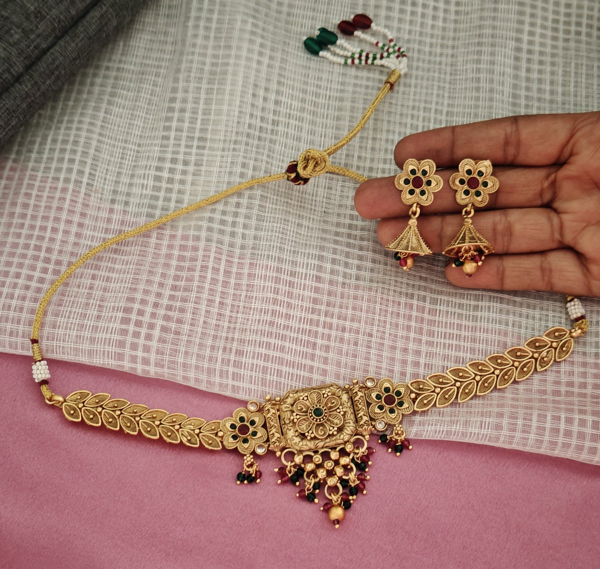 GREEN AND PINK NIHARIKA JEWELLERY SET