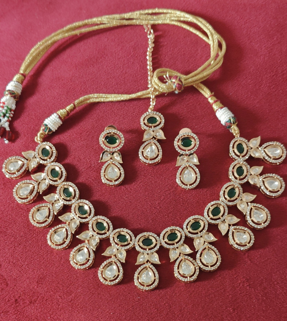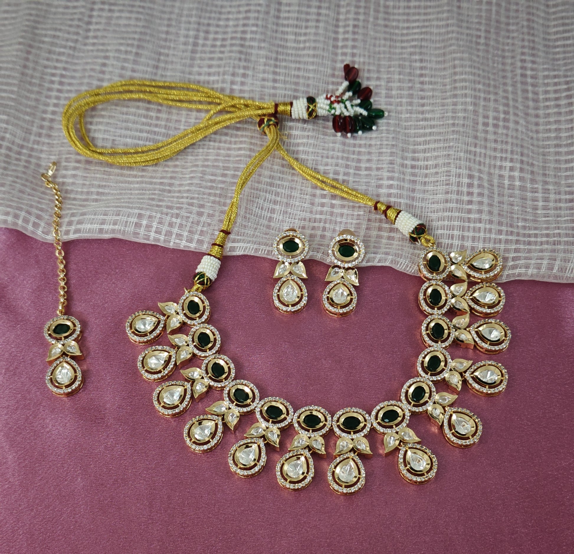 • Pack contains: 1 necklace , 1 pair of earings and 1 Mangtika