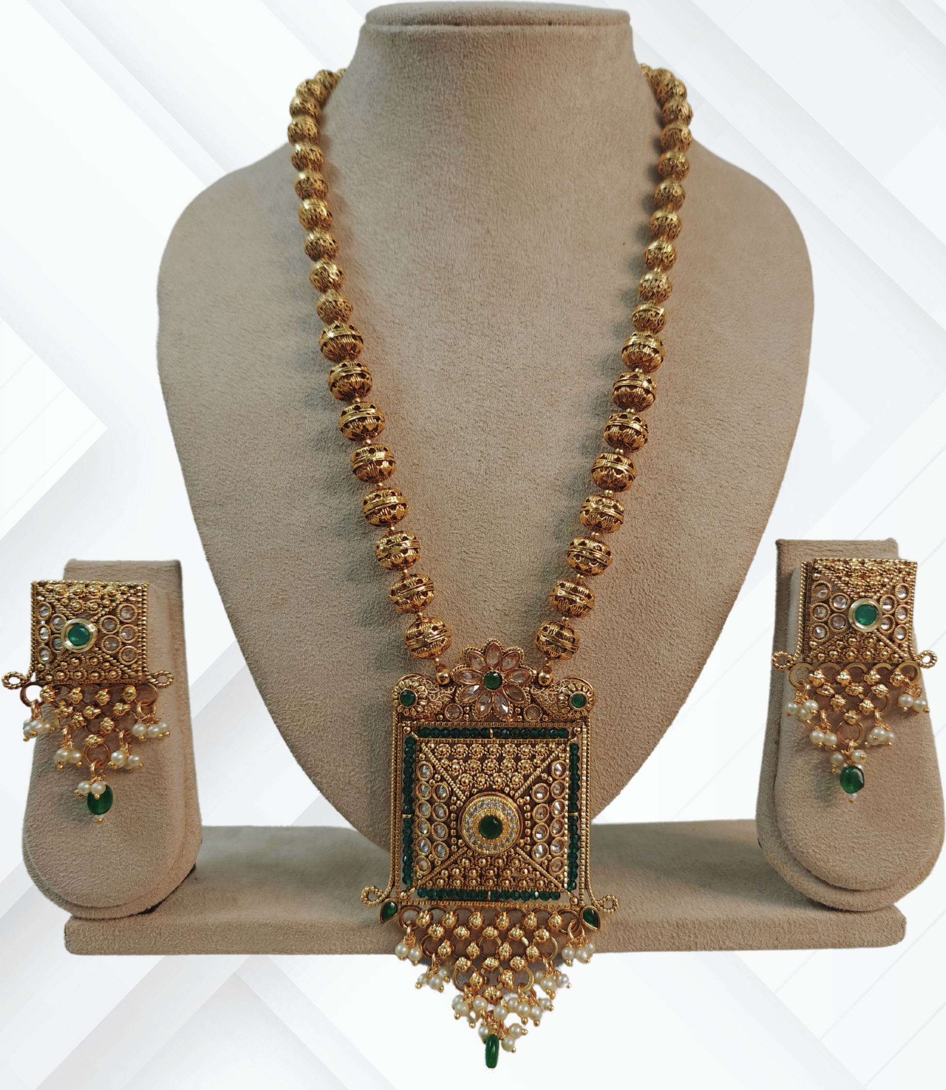 Whether worn with traditional attire for a lavish celebration or paired with contemporary couture for a modern twist, this royal jewellery set is sure to make a statement. With its undeniable charm, it embodies the dignity and poise of a true queen, ensuring that you shine bright in every setting.