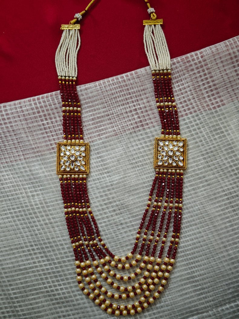 MAROON MAHUA PEARL MALA SET