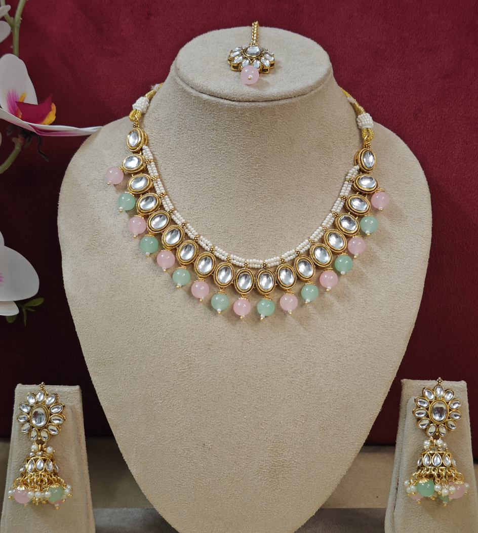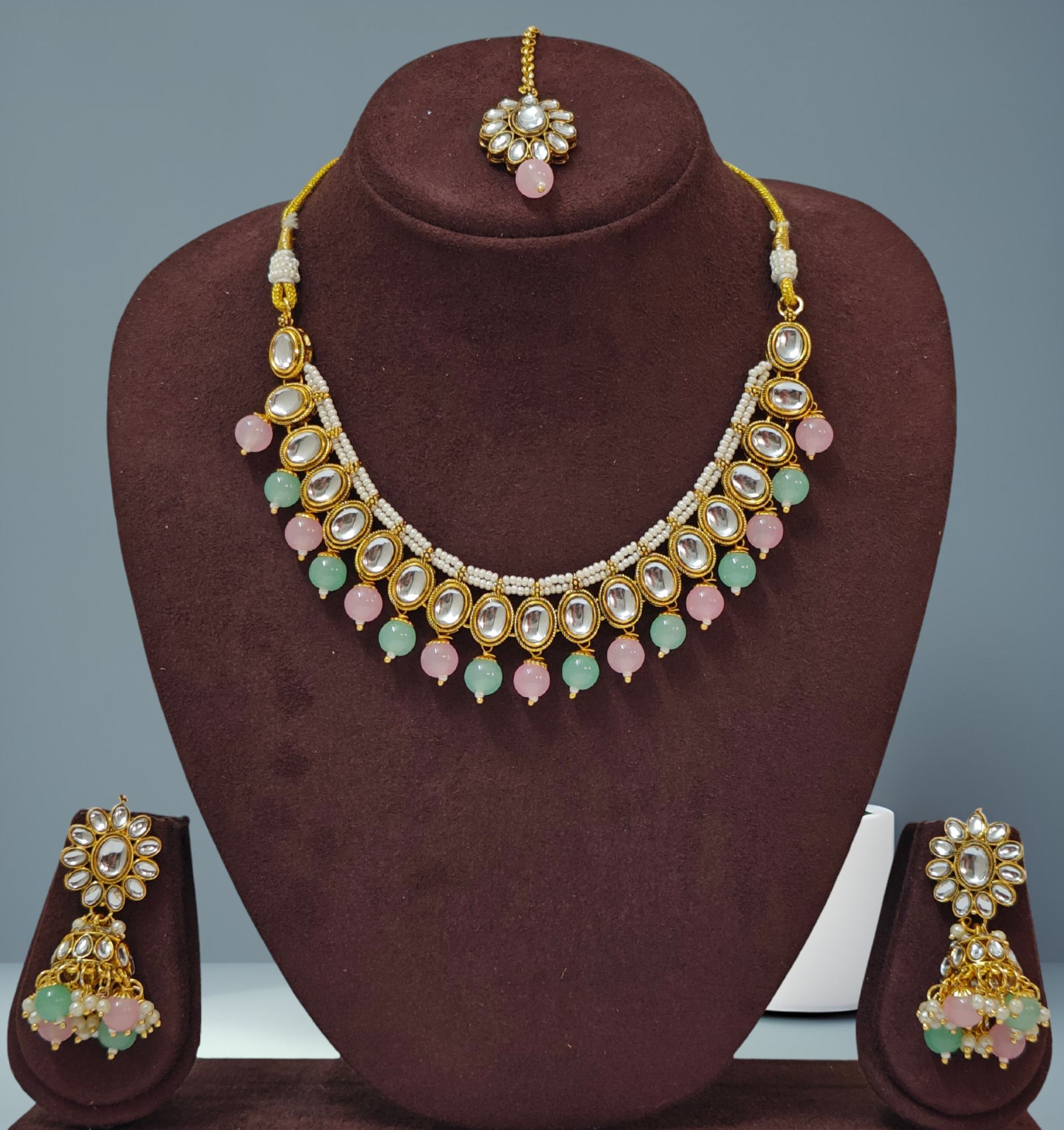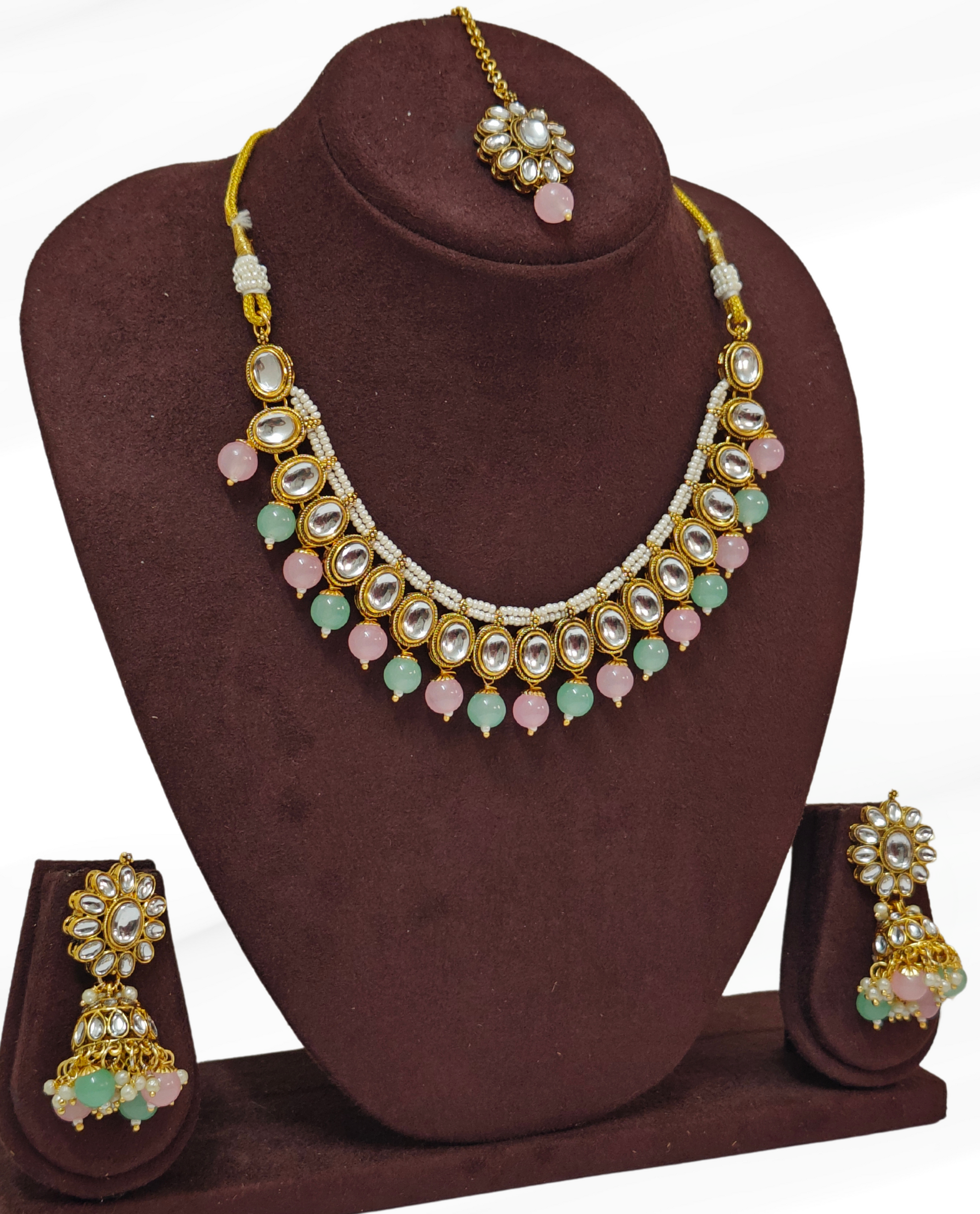 • Pack contains: 1 necklace, 1 pair of earrings and 1 Mangtika