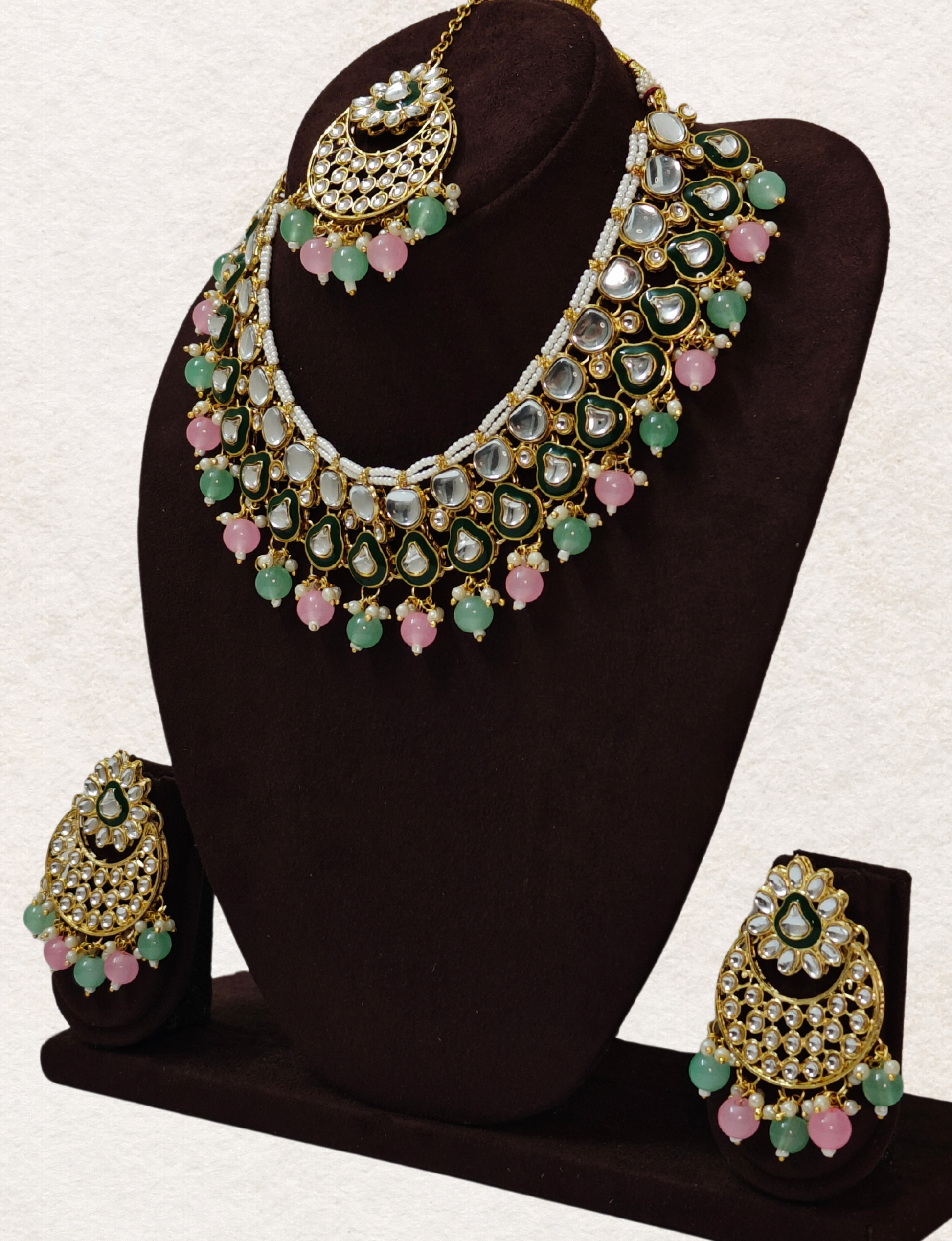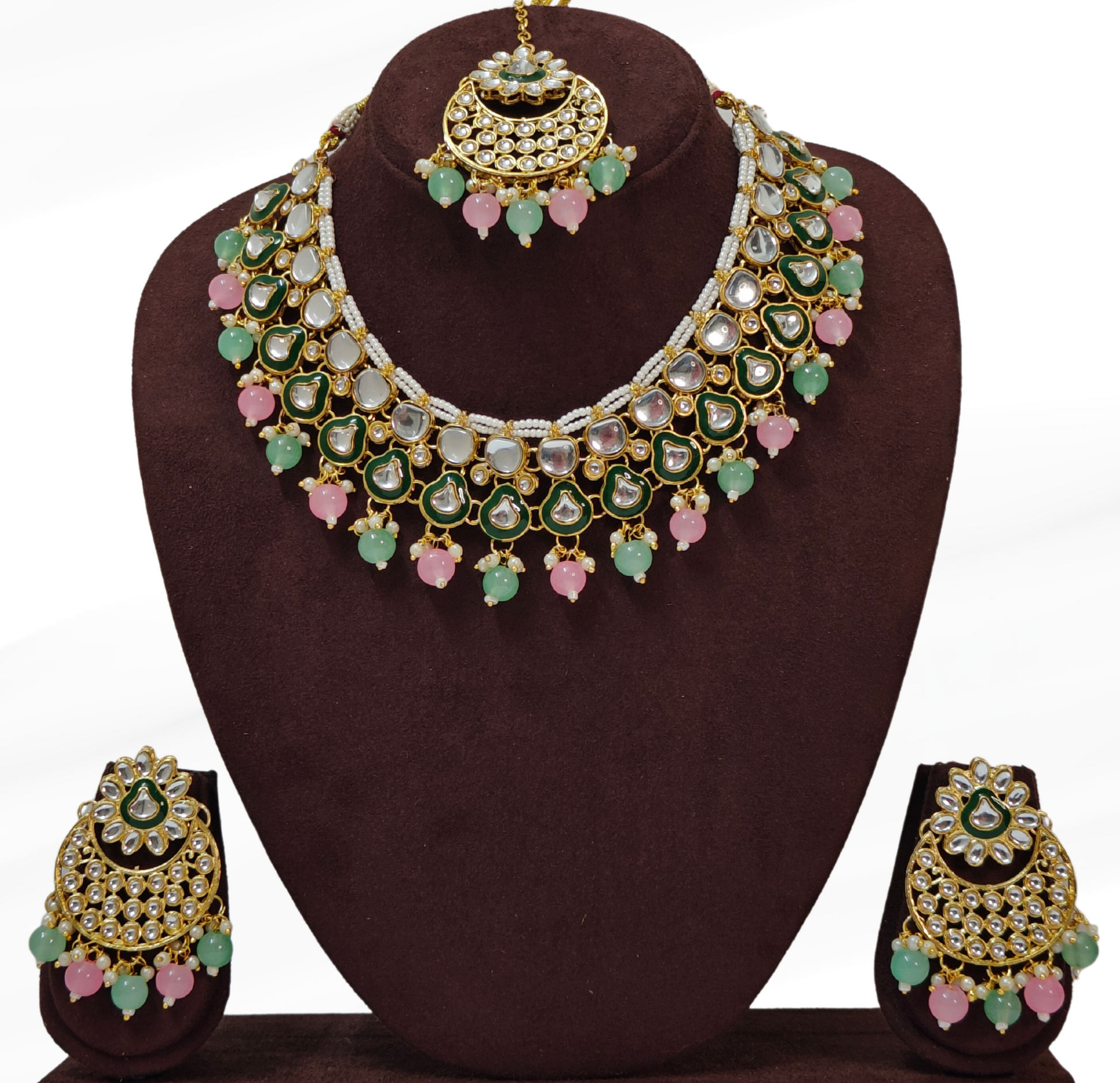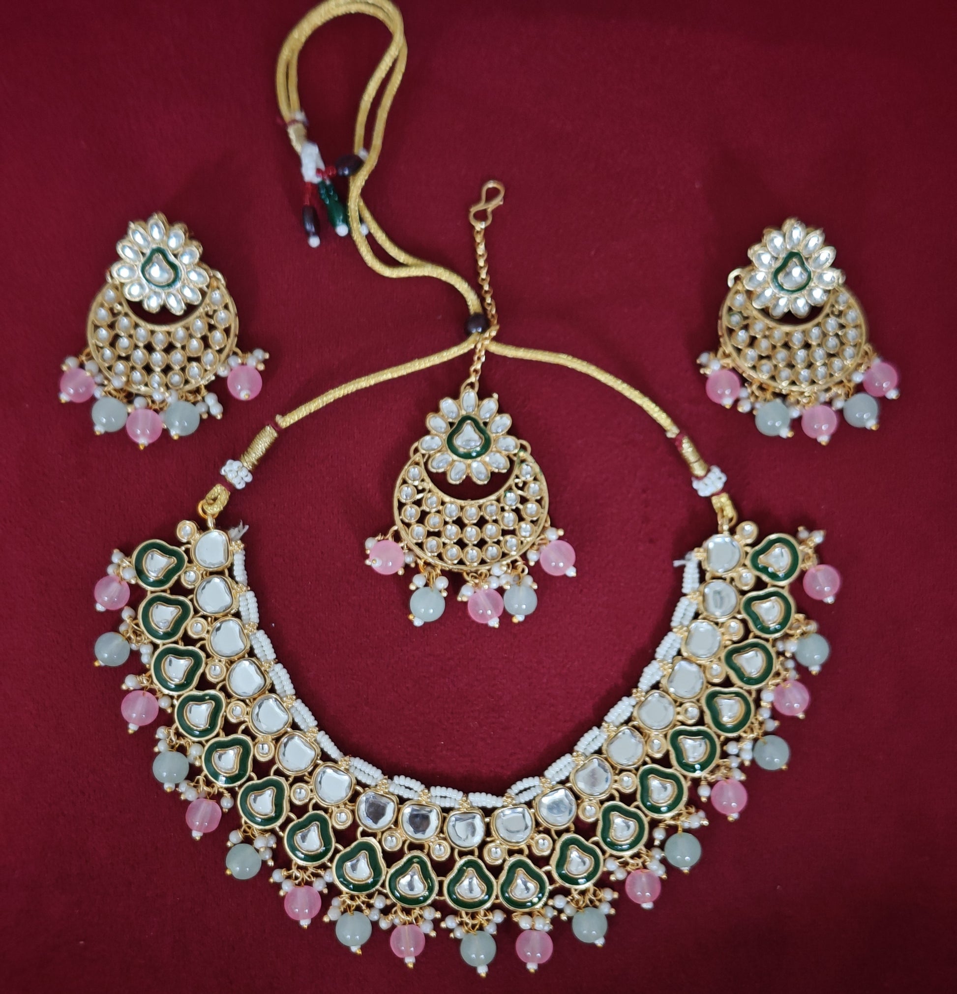 • Pack contains: 1 necklace, 1 pair of earrings and 1 Mangtika