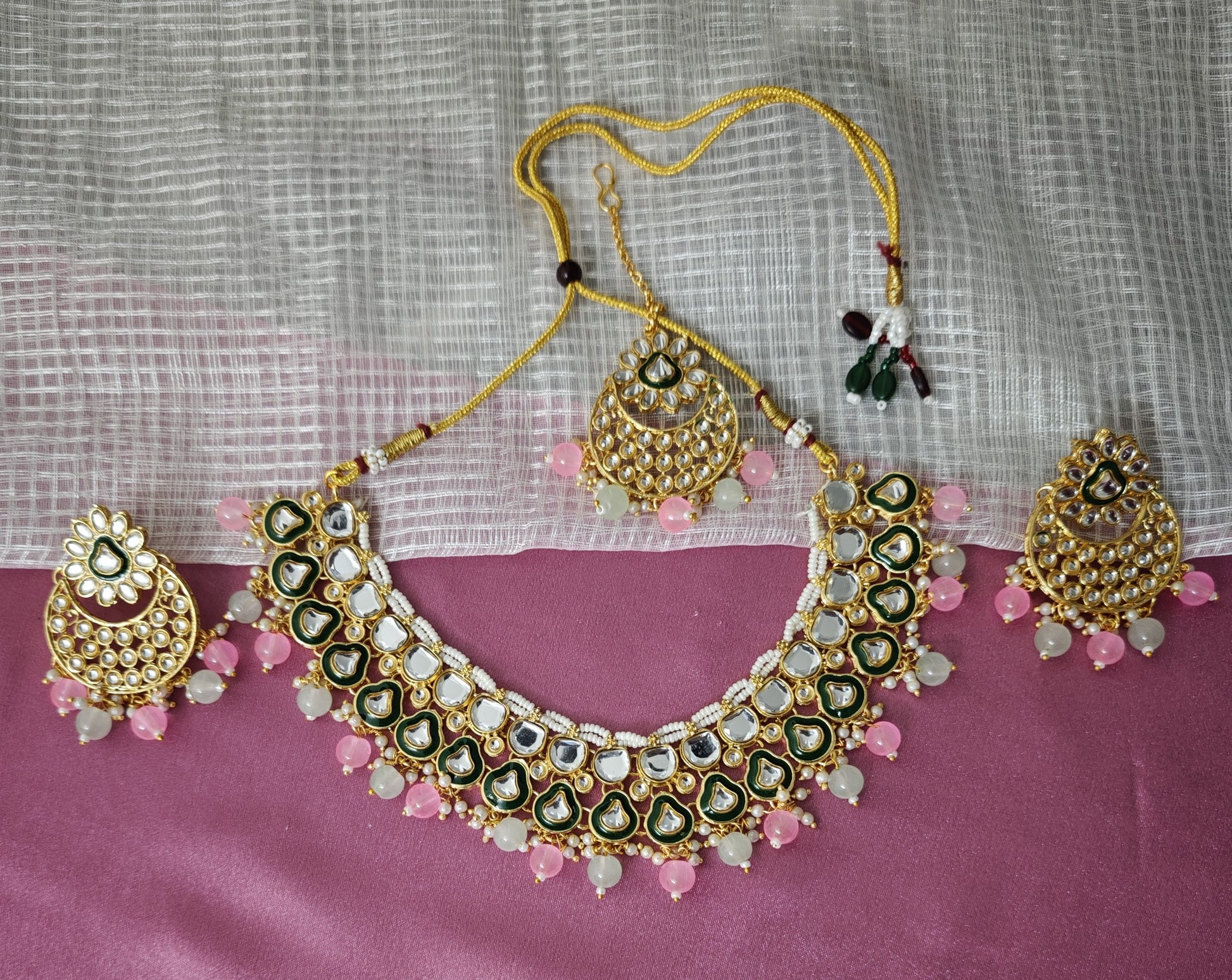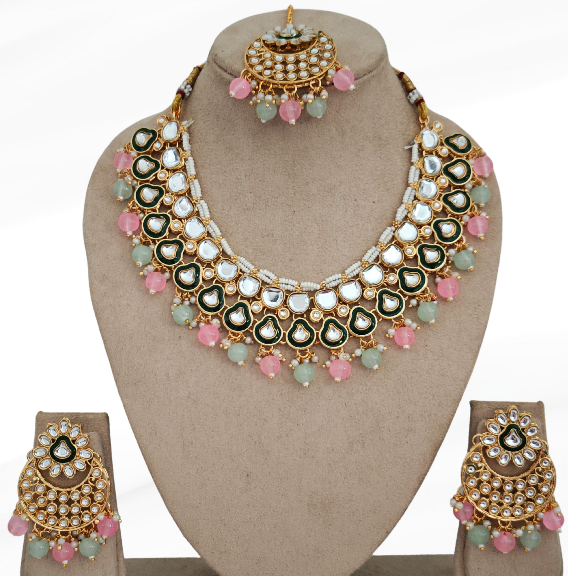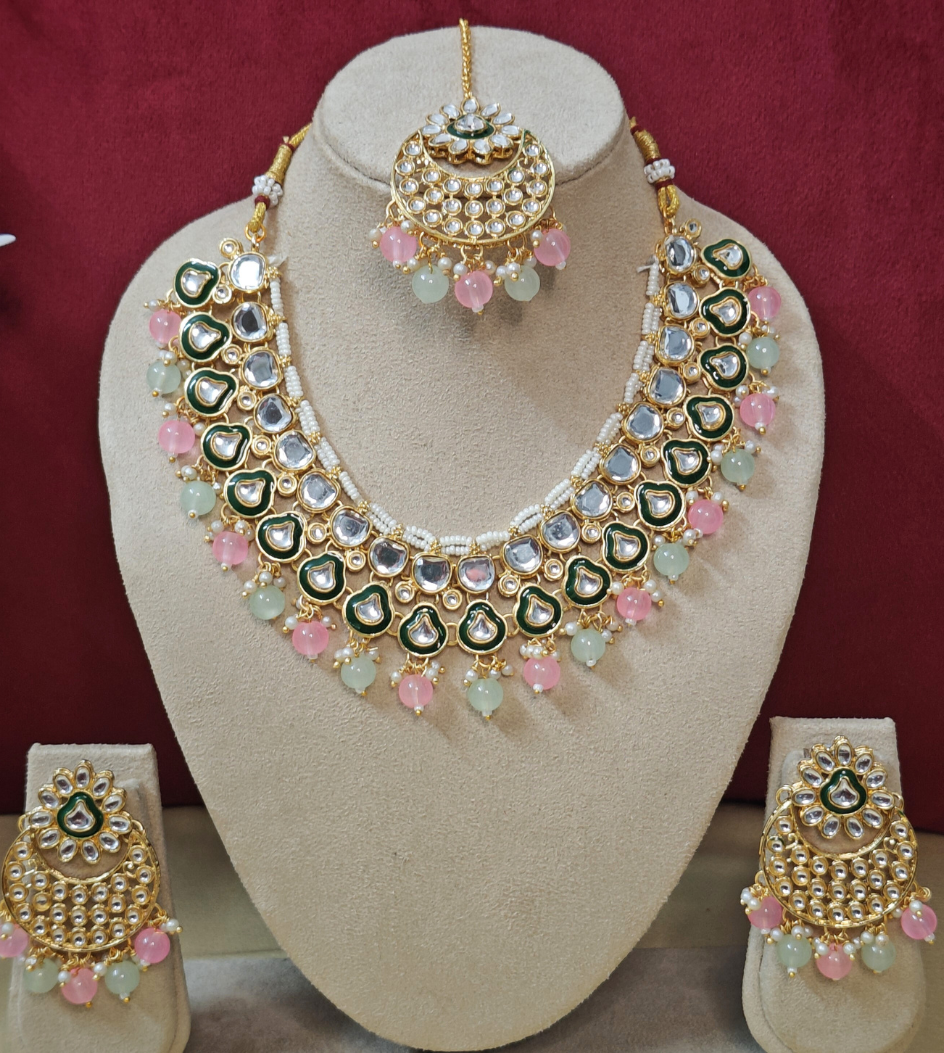• Pack contains: 1 necklace, 1 pair of earrings and 1 Mangtika