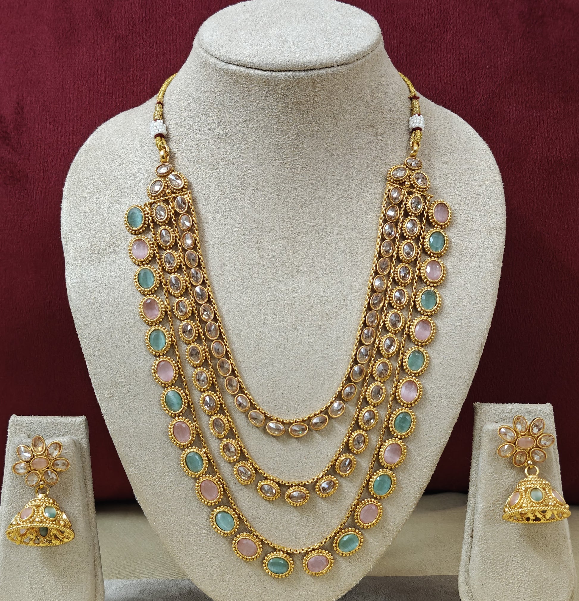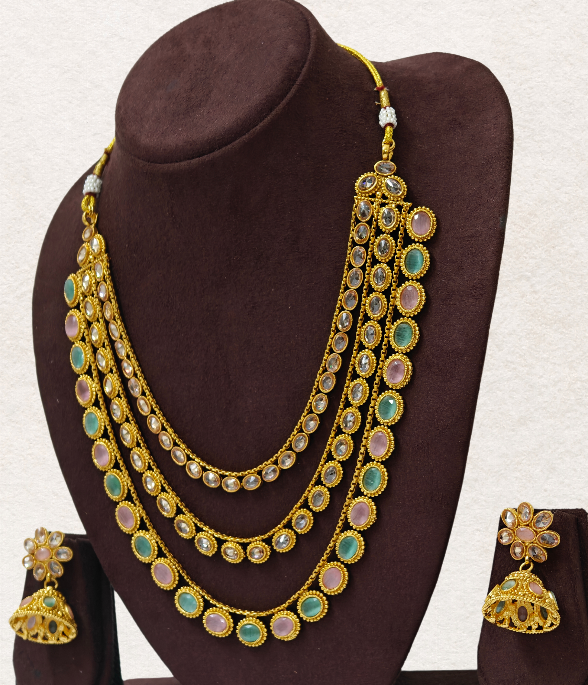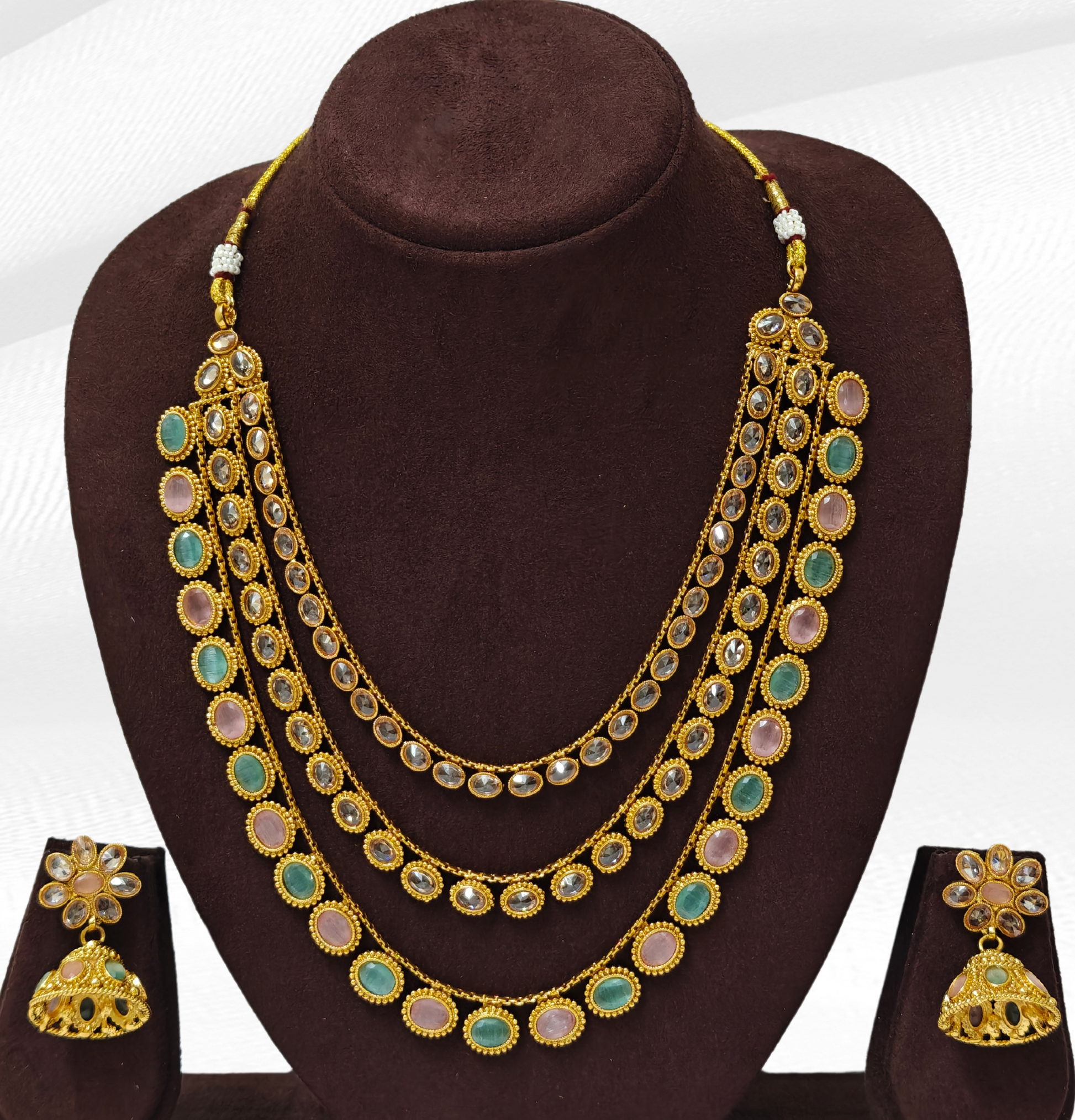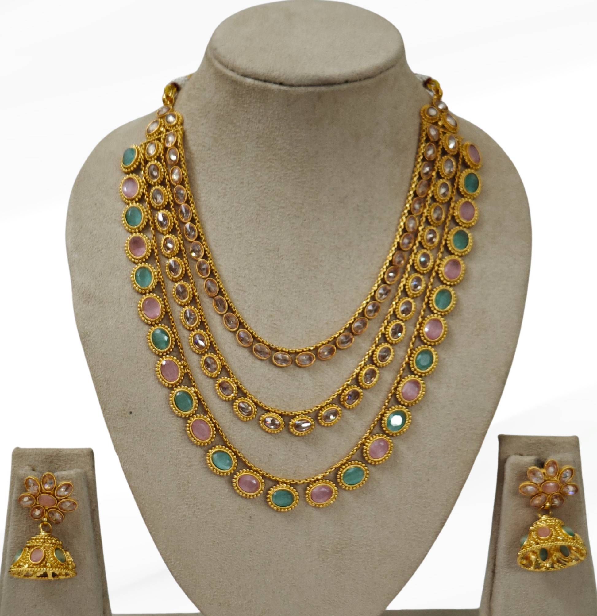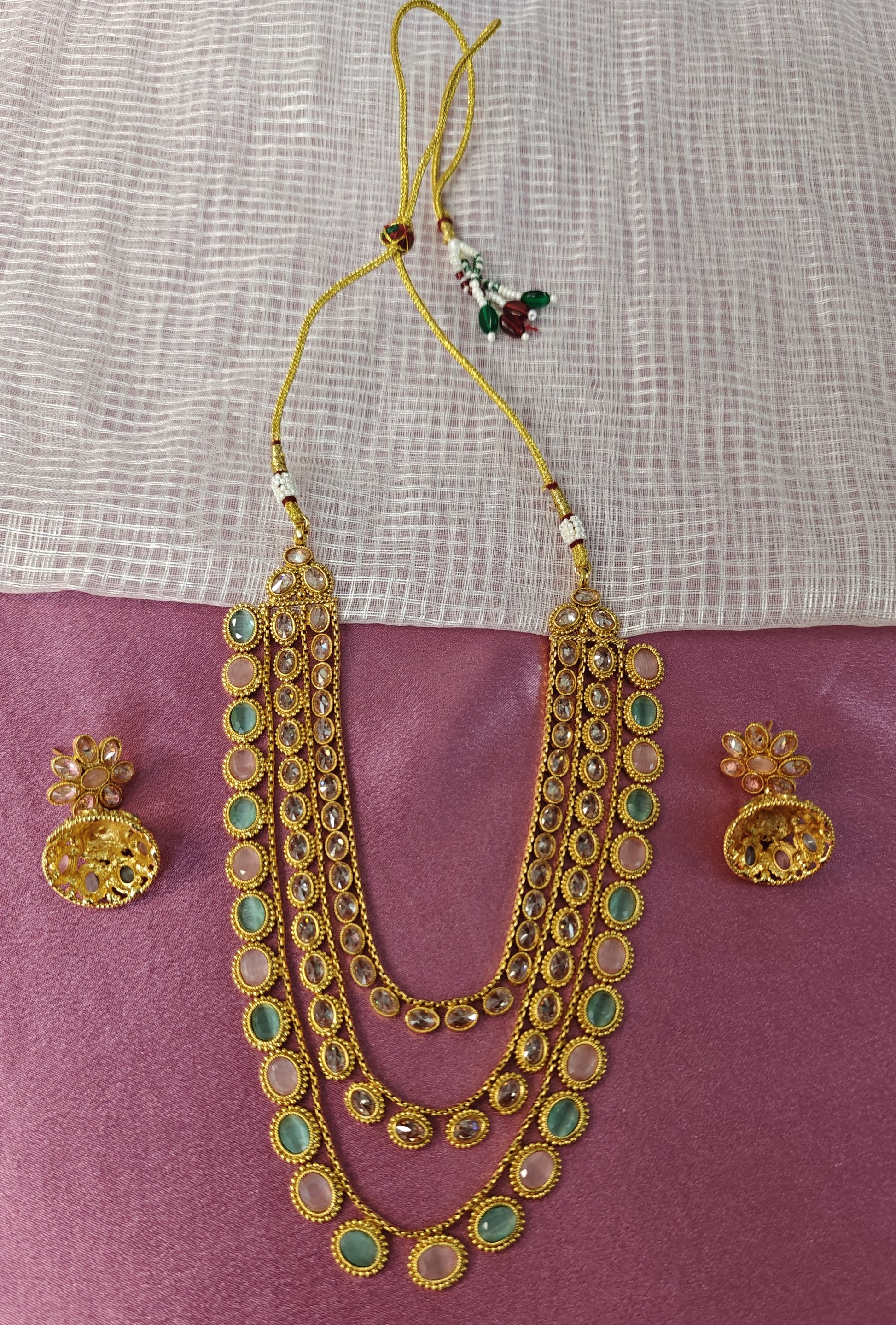 MINT AND PINK KHYATI THREE LAYERED JEWELLERY SET