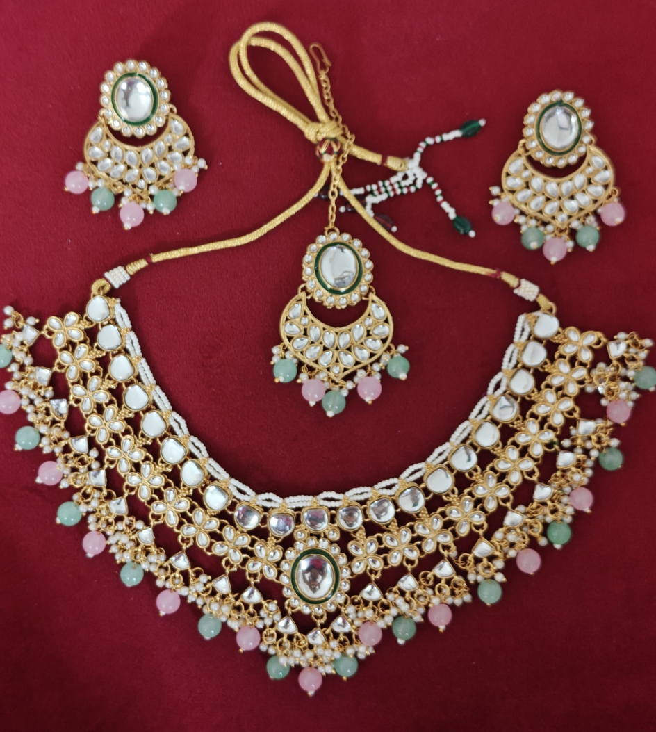 • Pack contains: 1 necklace, 1 pair of earrings and 1 Mangtika