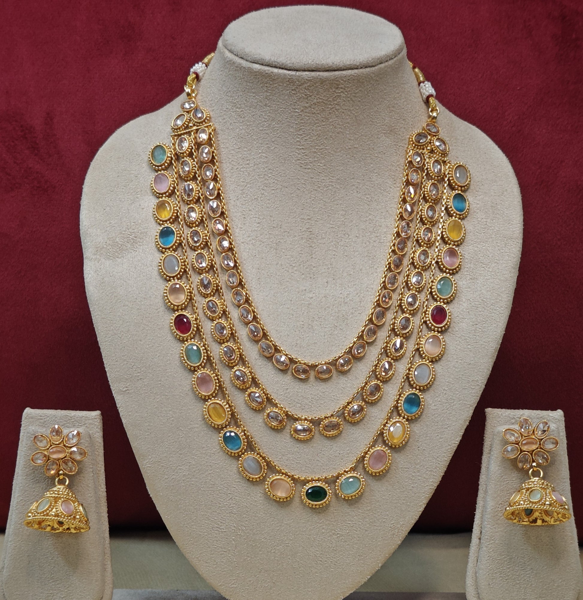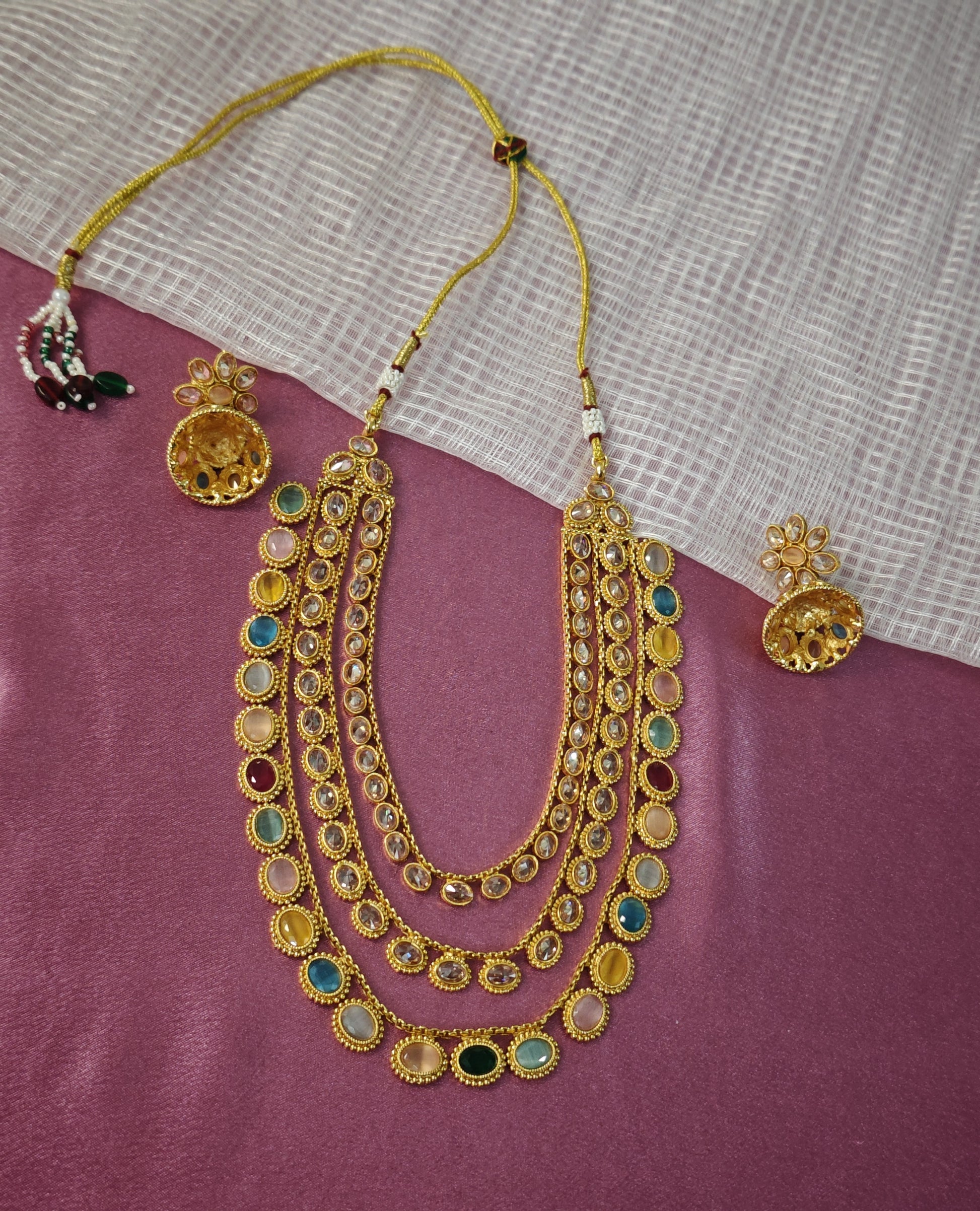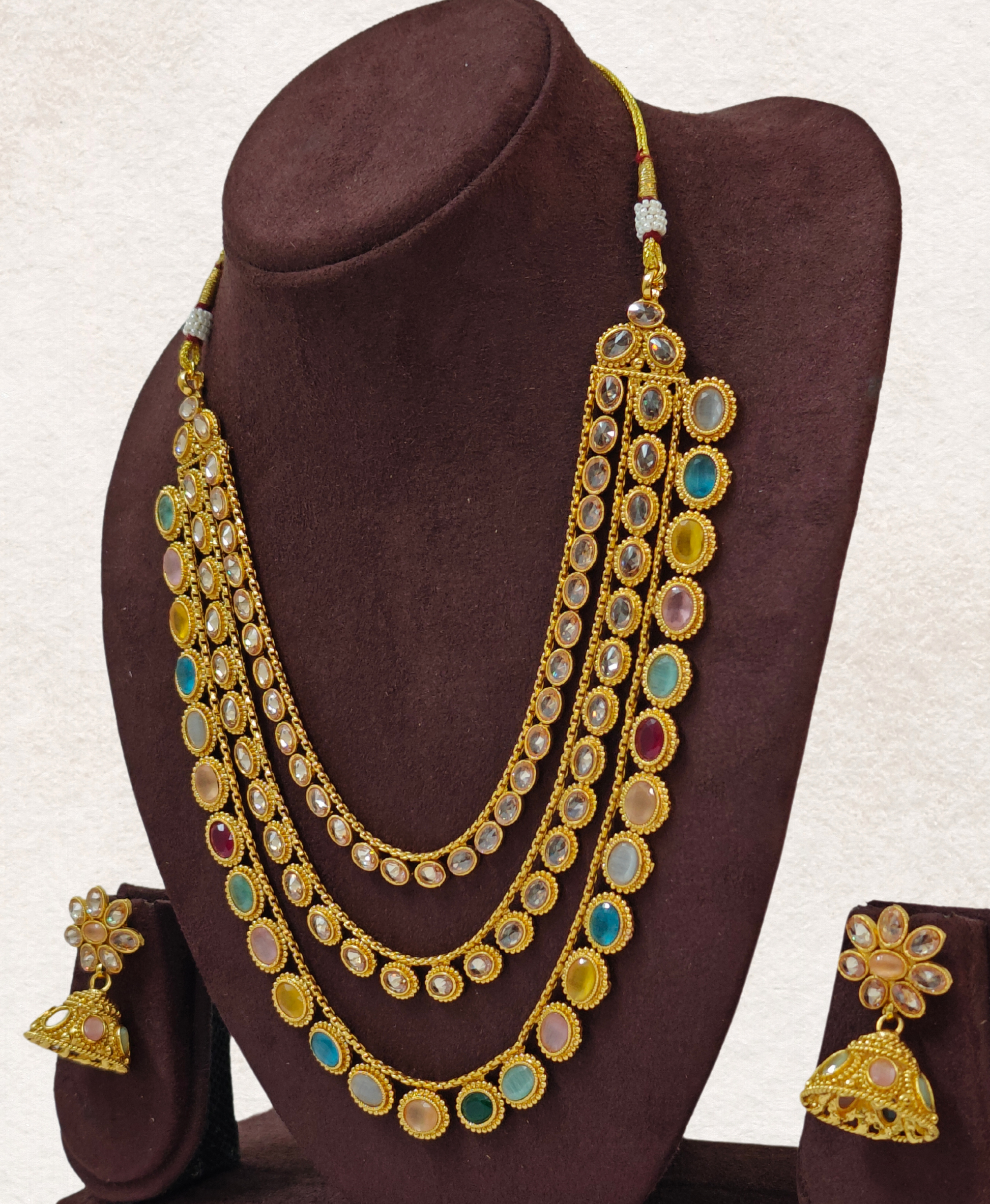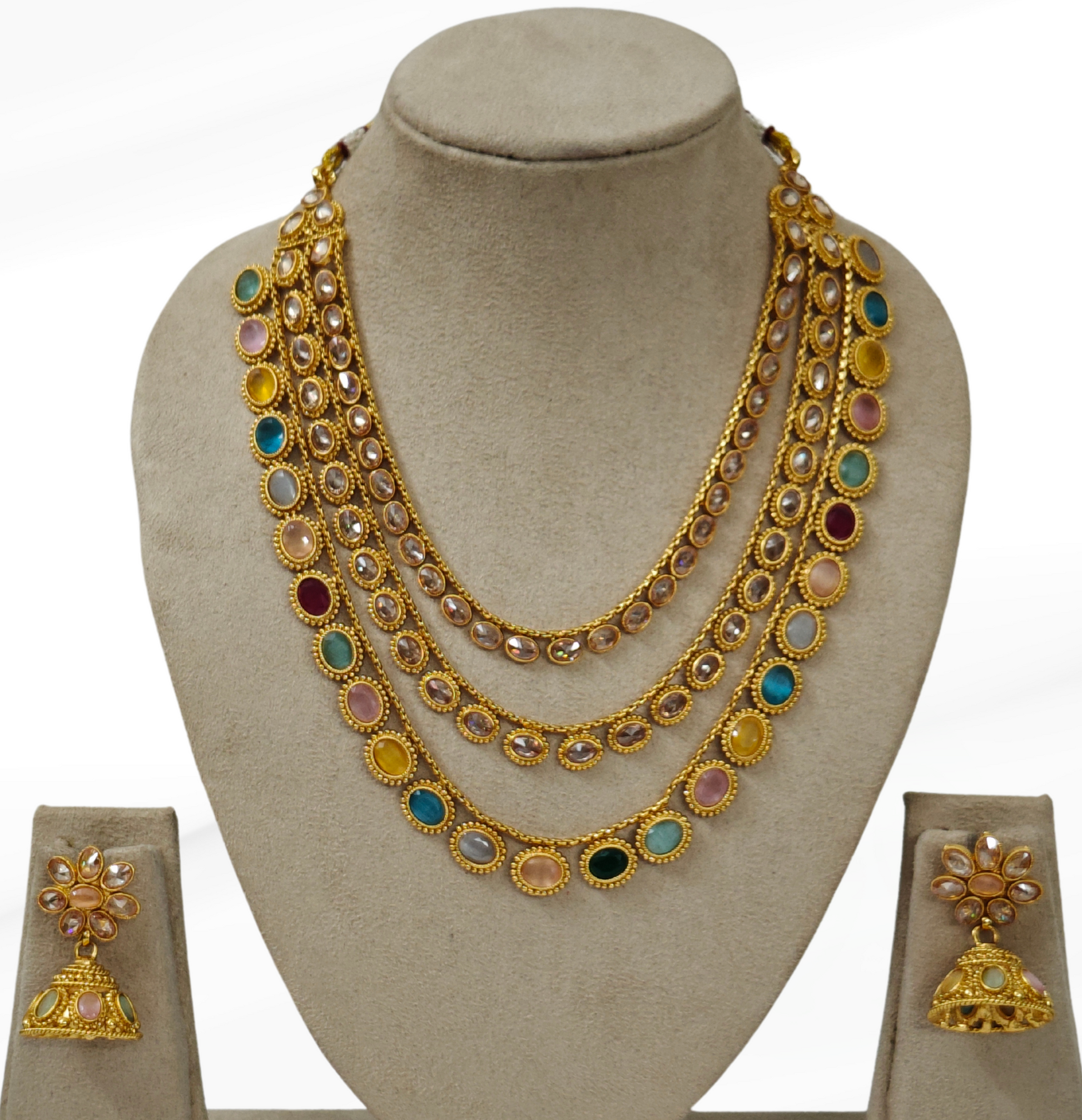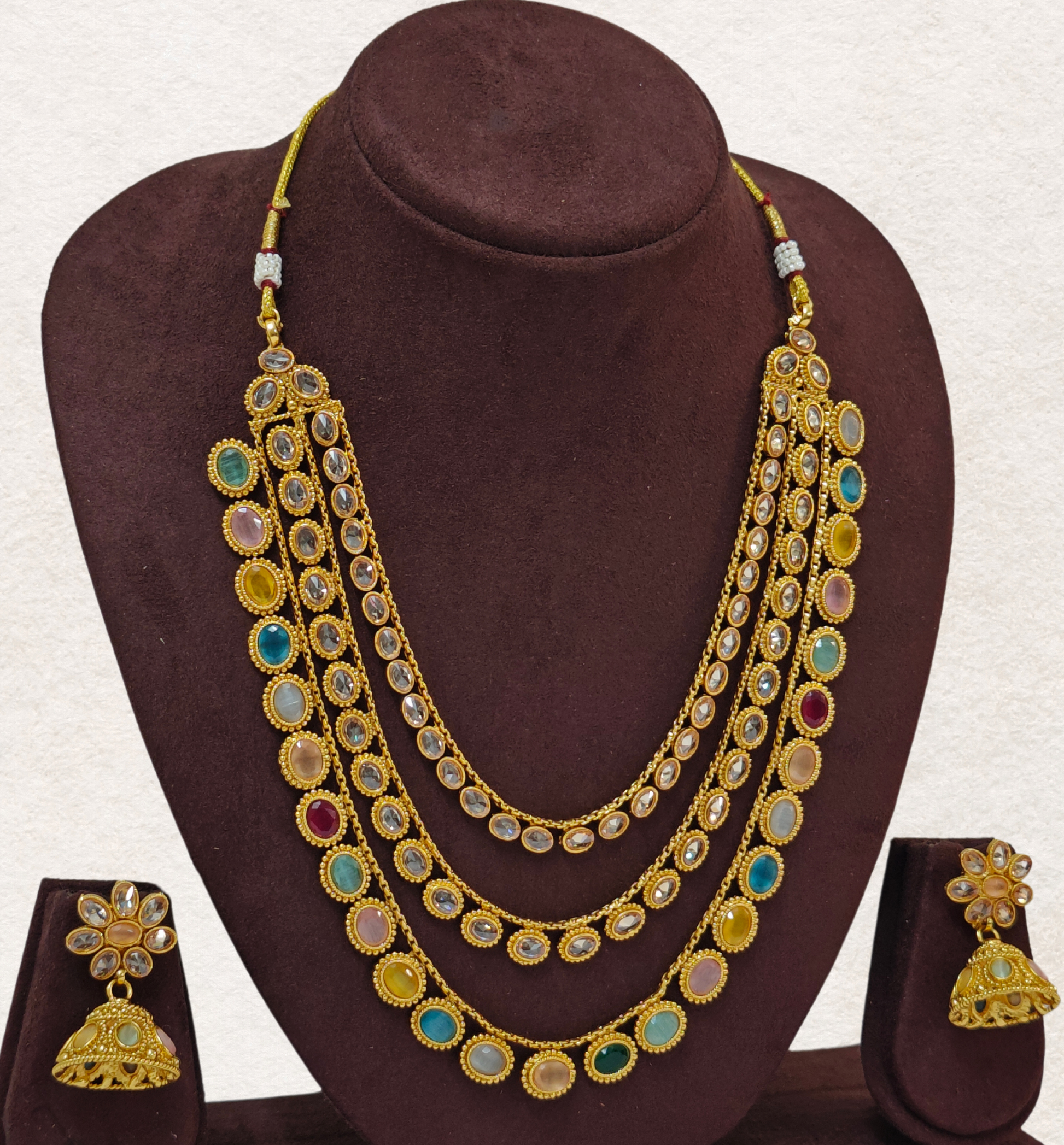 MULTICOLOR KHYATI THREE LAYERED JEWELLERY SET