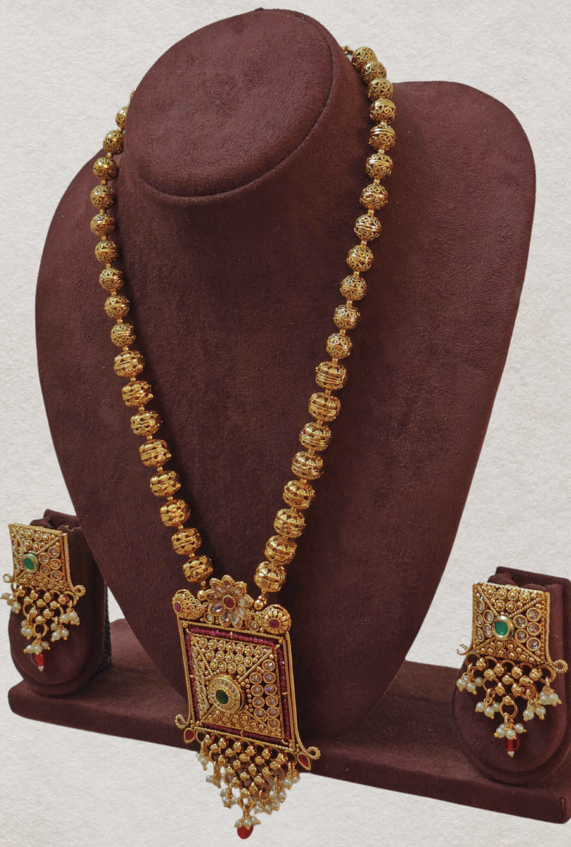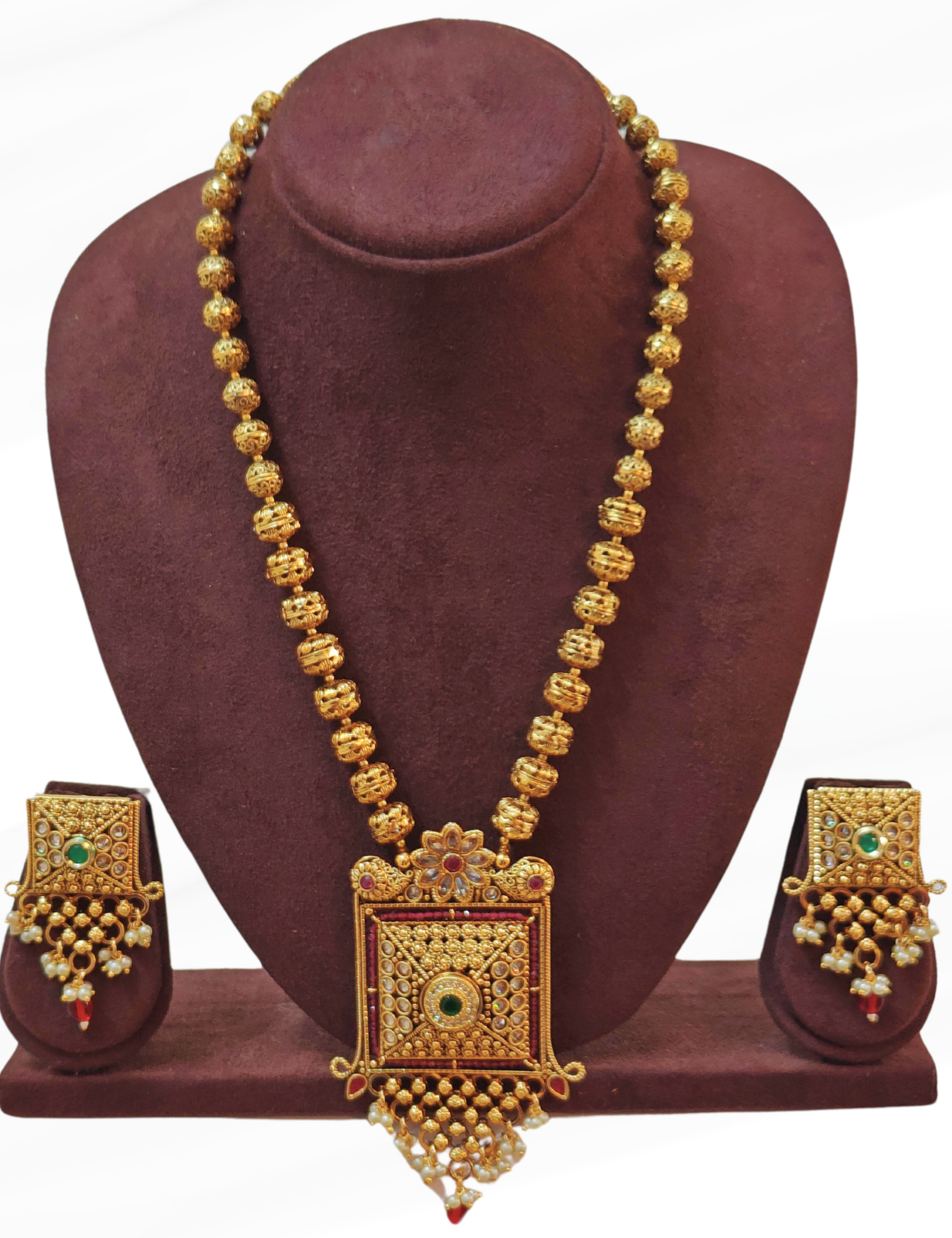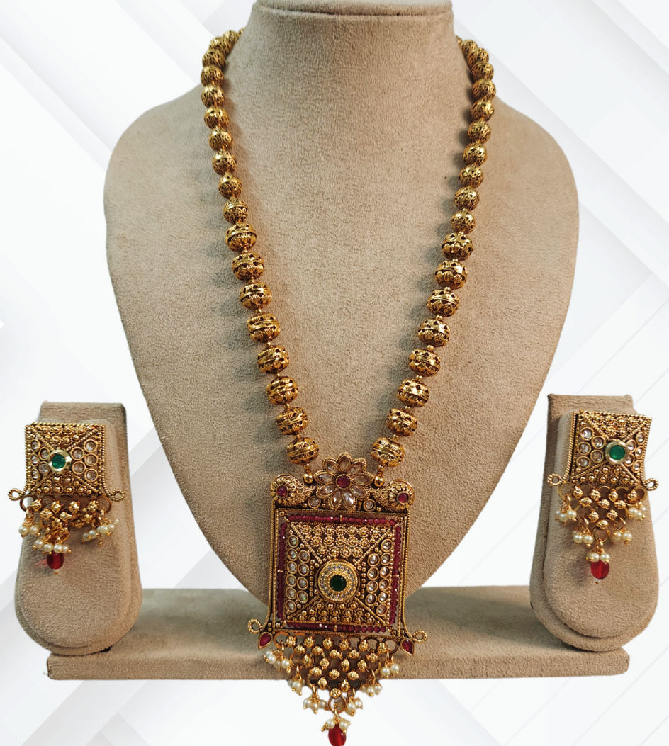 Whether worn with traditional attire for a lavish celebration or paired with contemporary couture for a modern twist, this royal jewellery set is sure to make a statement. With its undeniable charm, it embodies the dignity and poise of a true queen, ensuring that you shine bright in every setting.