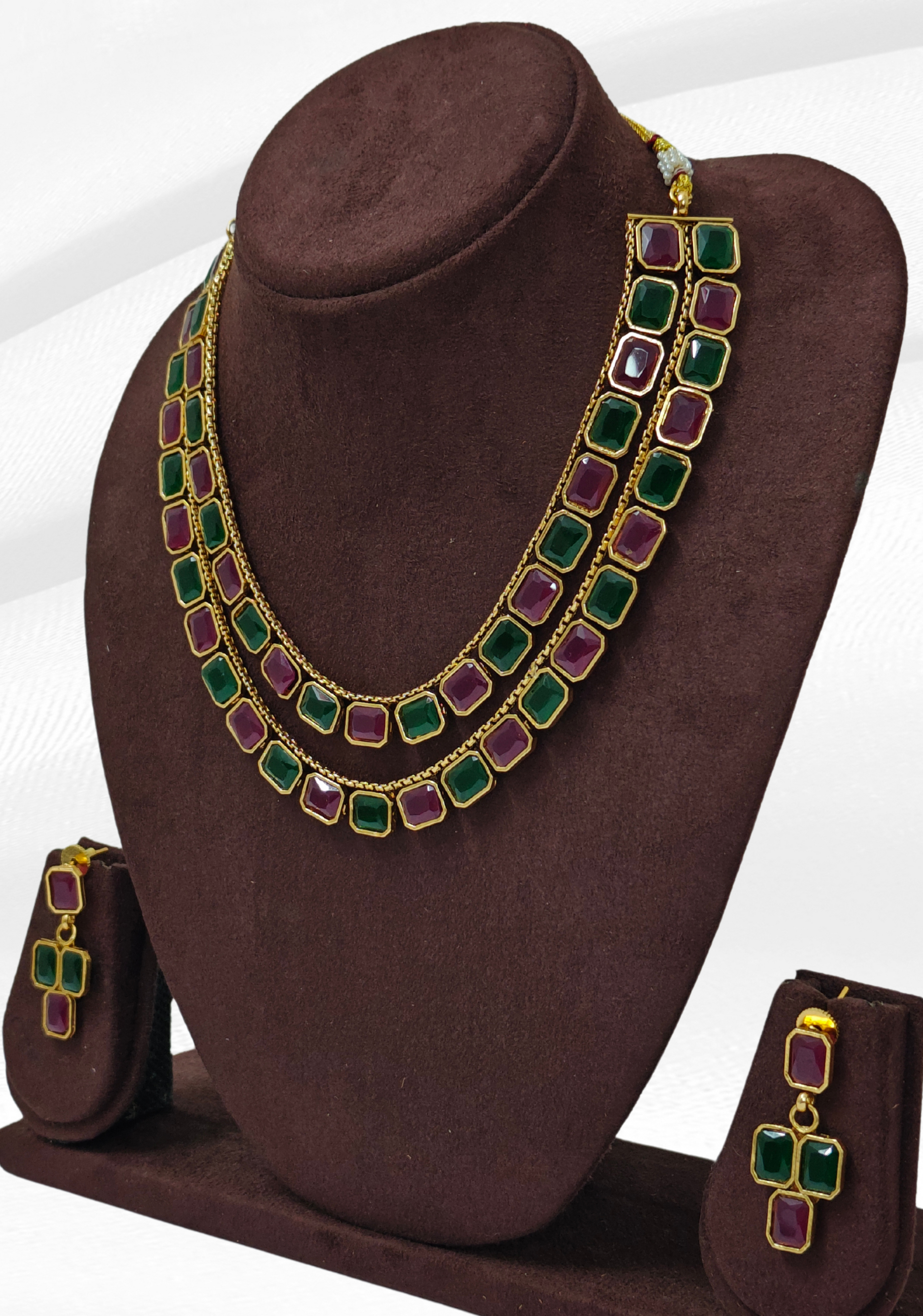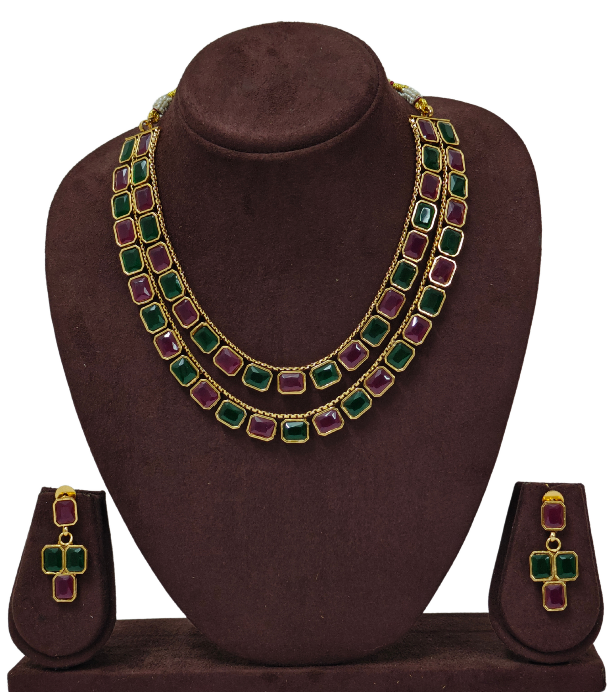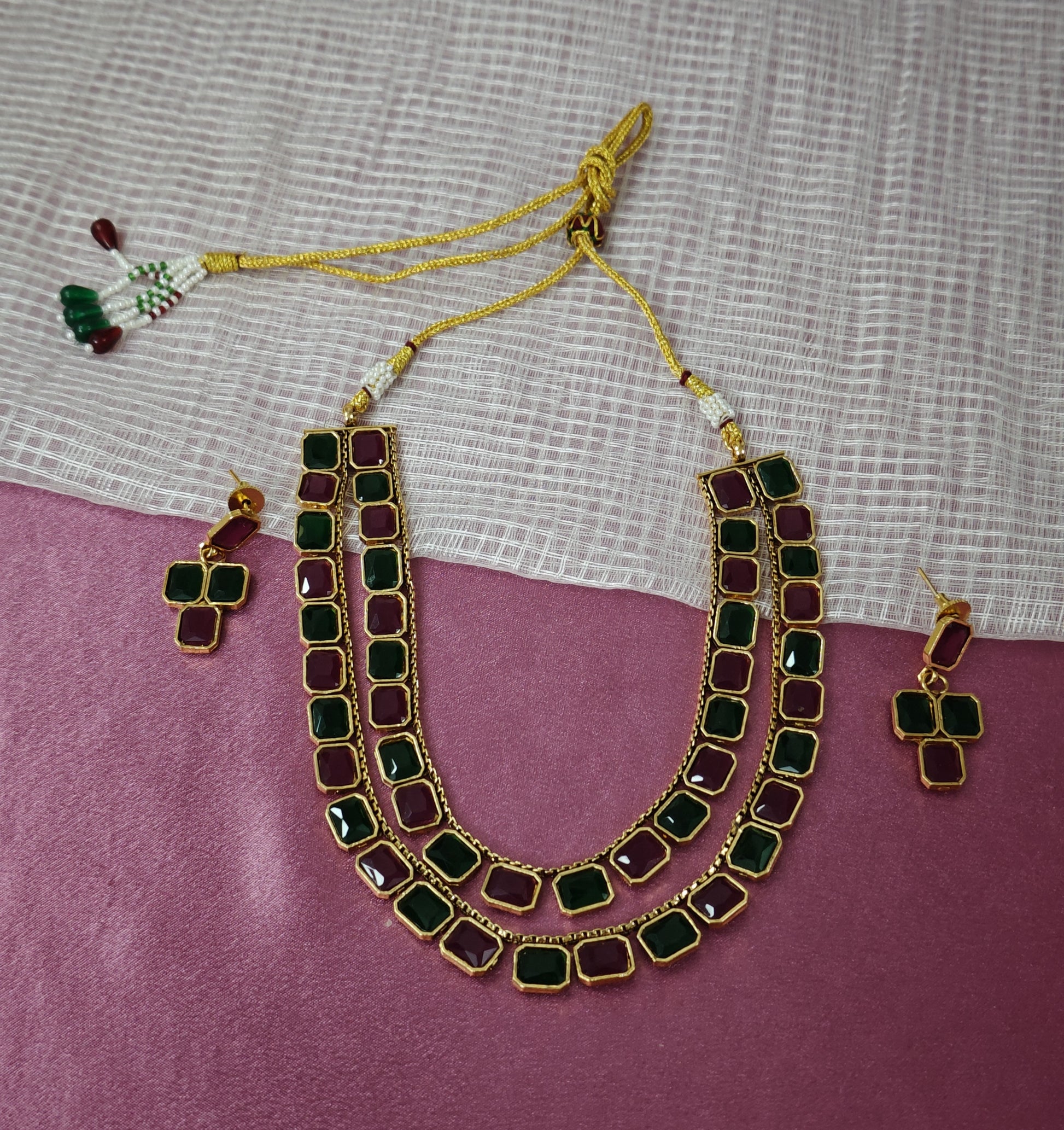PINK AND GREEN SHRIYA TWO LAYER JEWELLERY SET