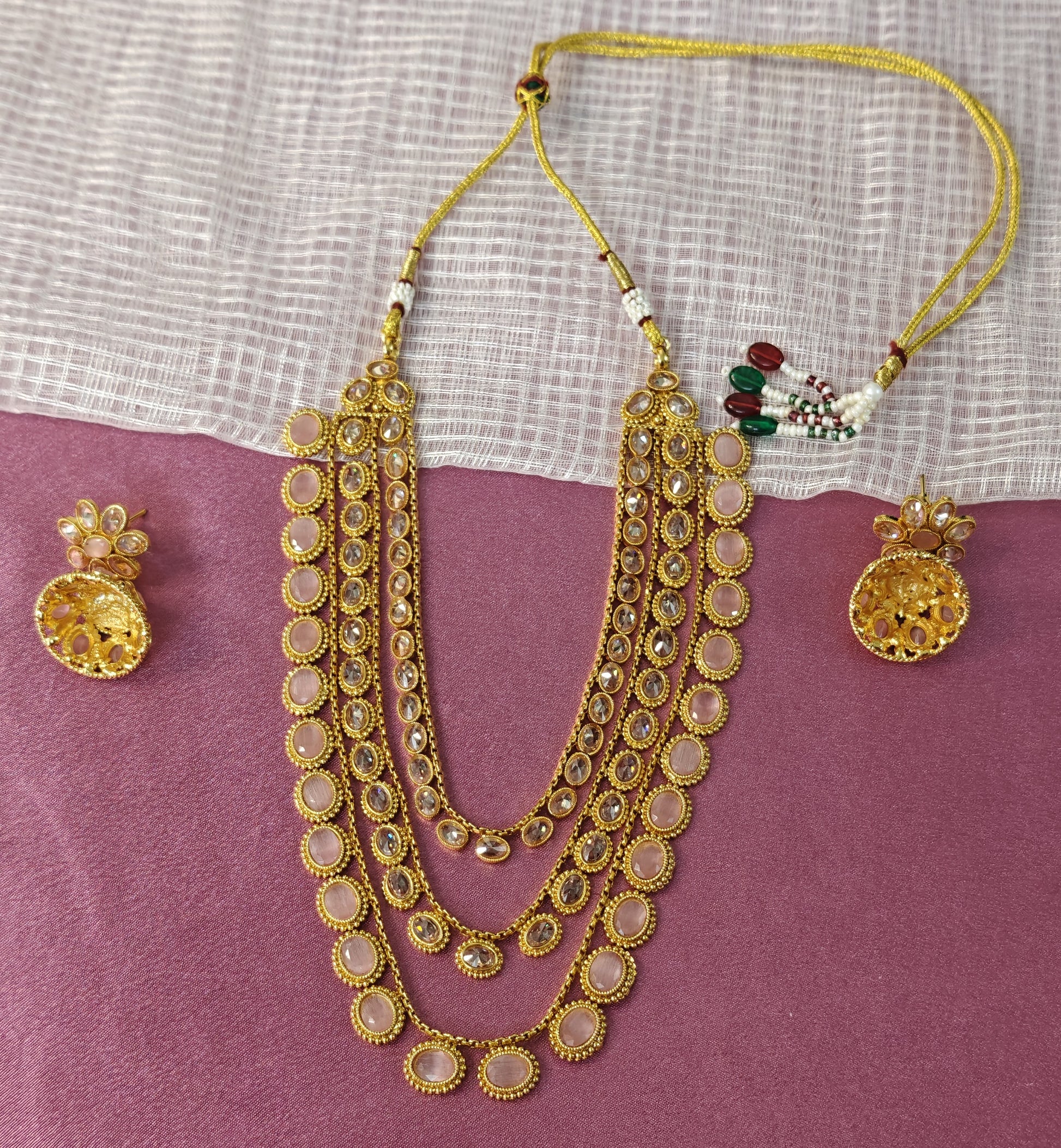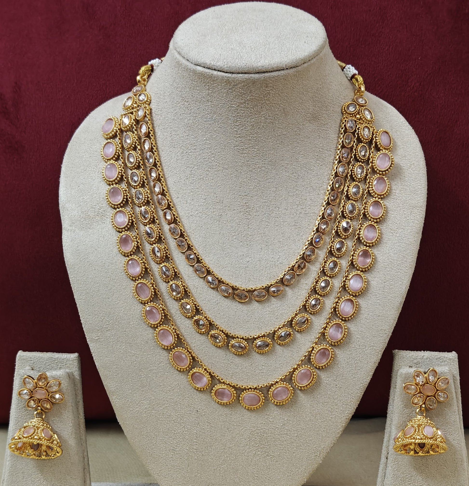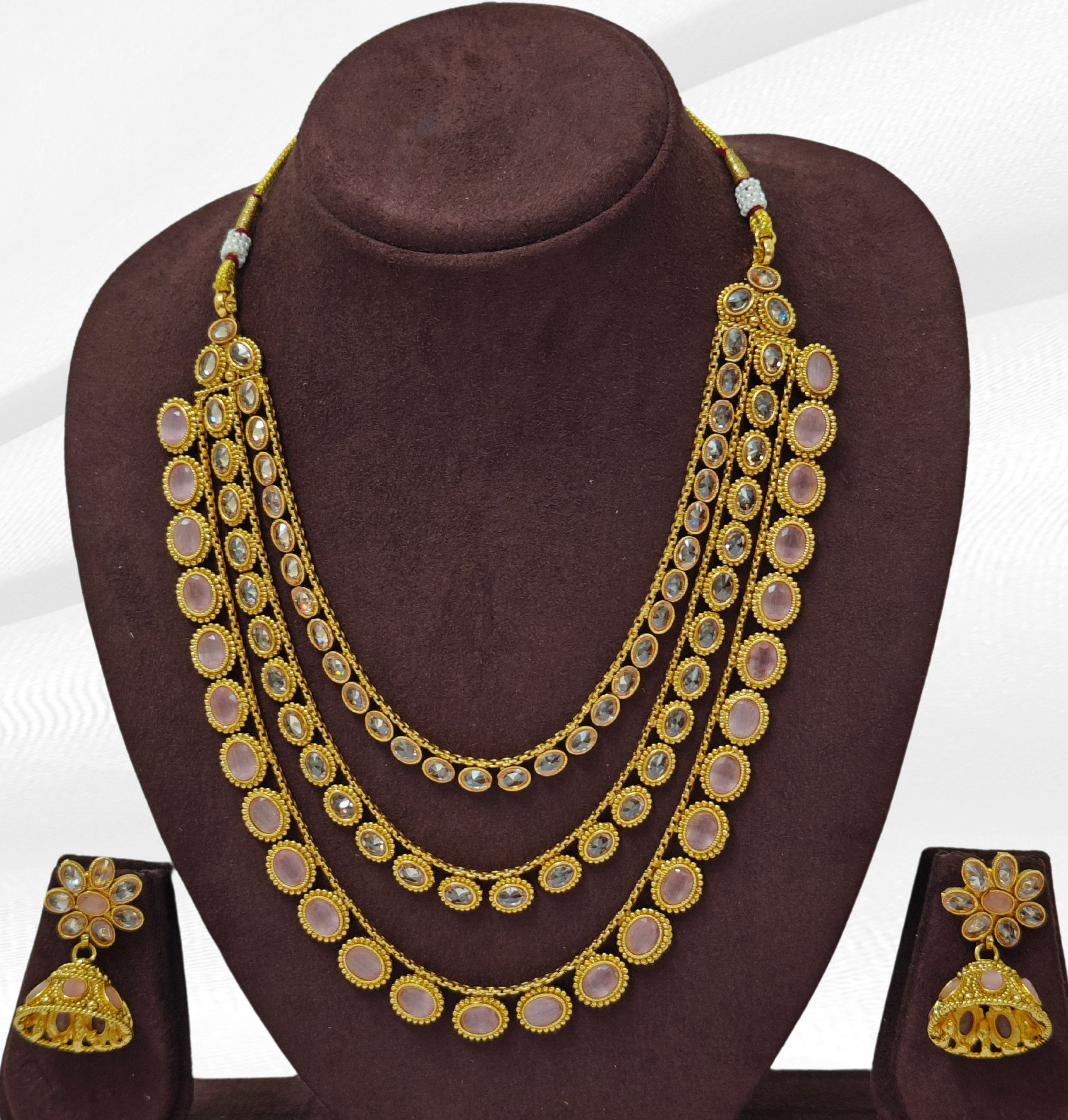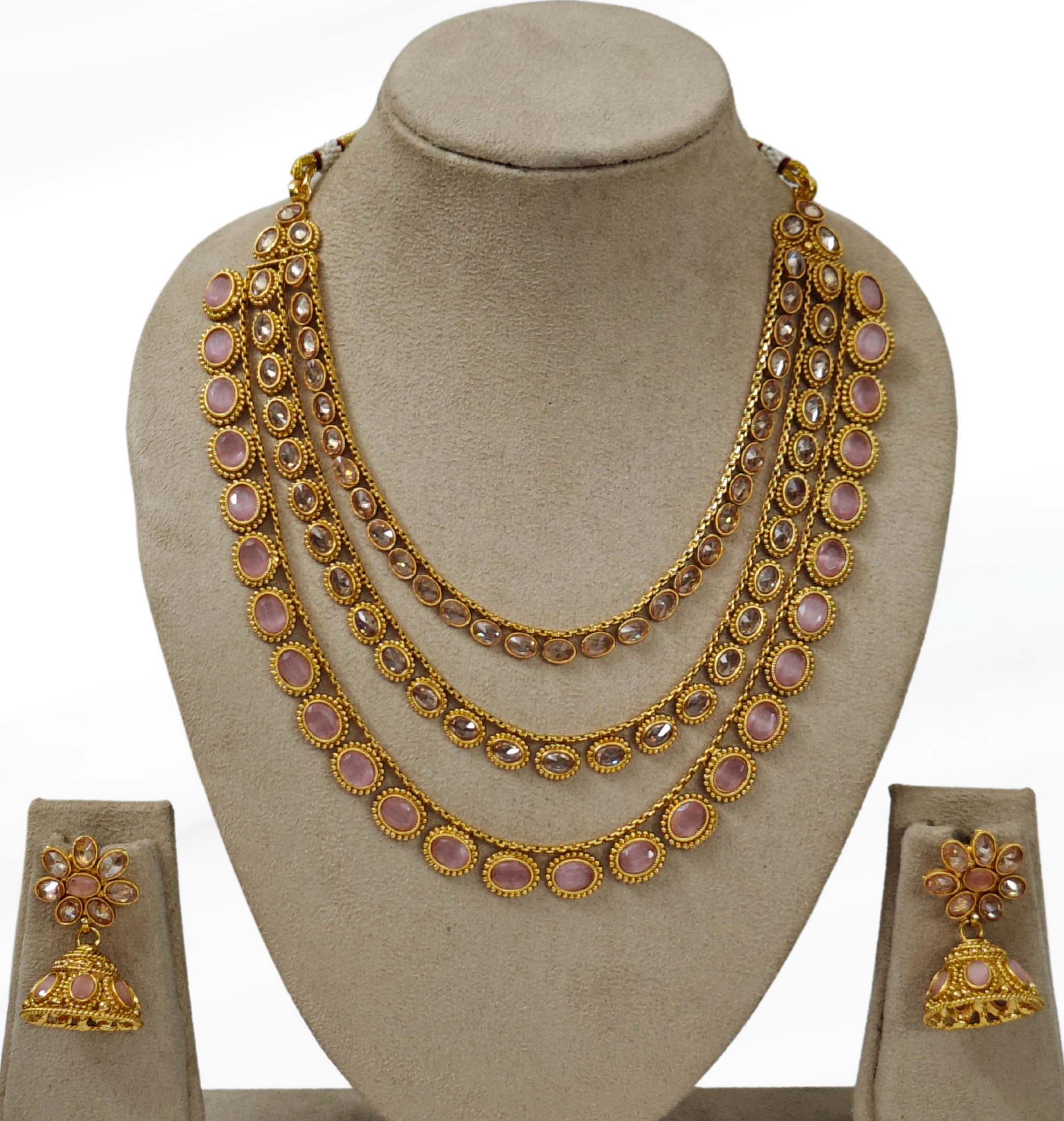 PINK KHYATI THREE LAYERED JEWELLERY SET