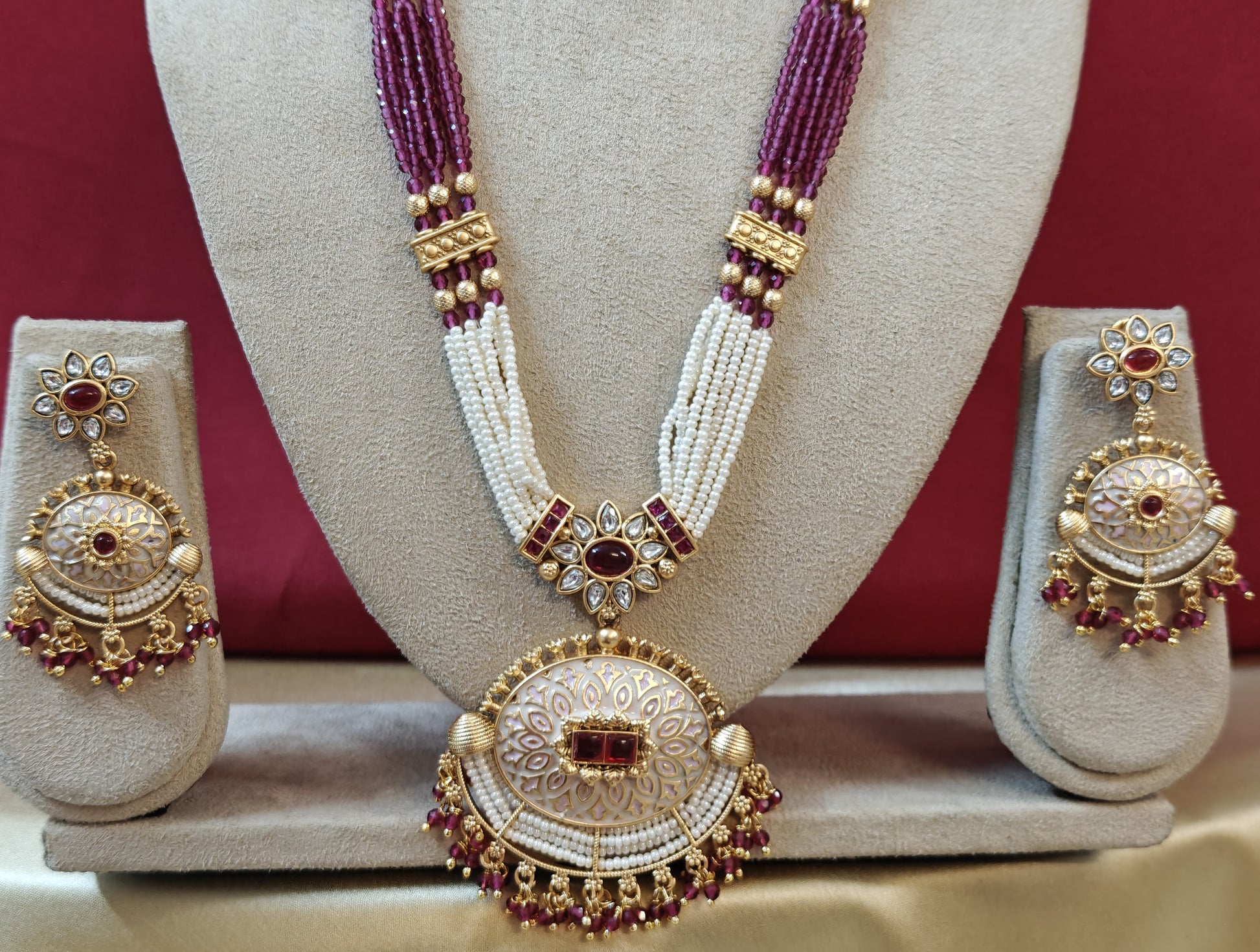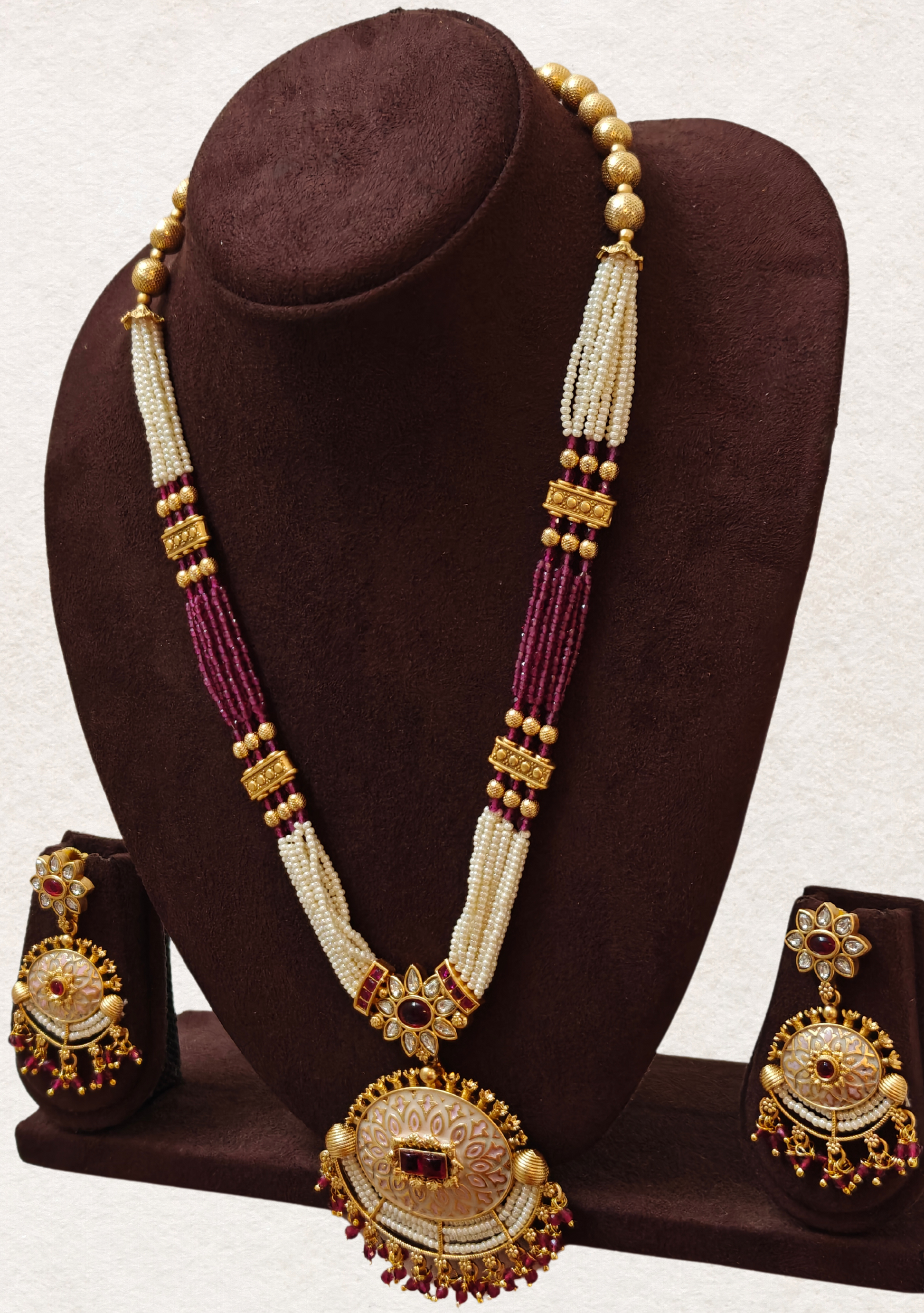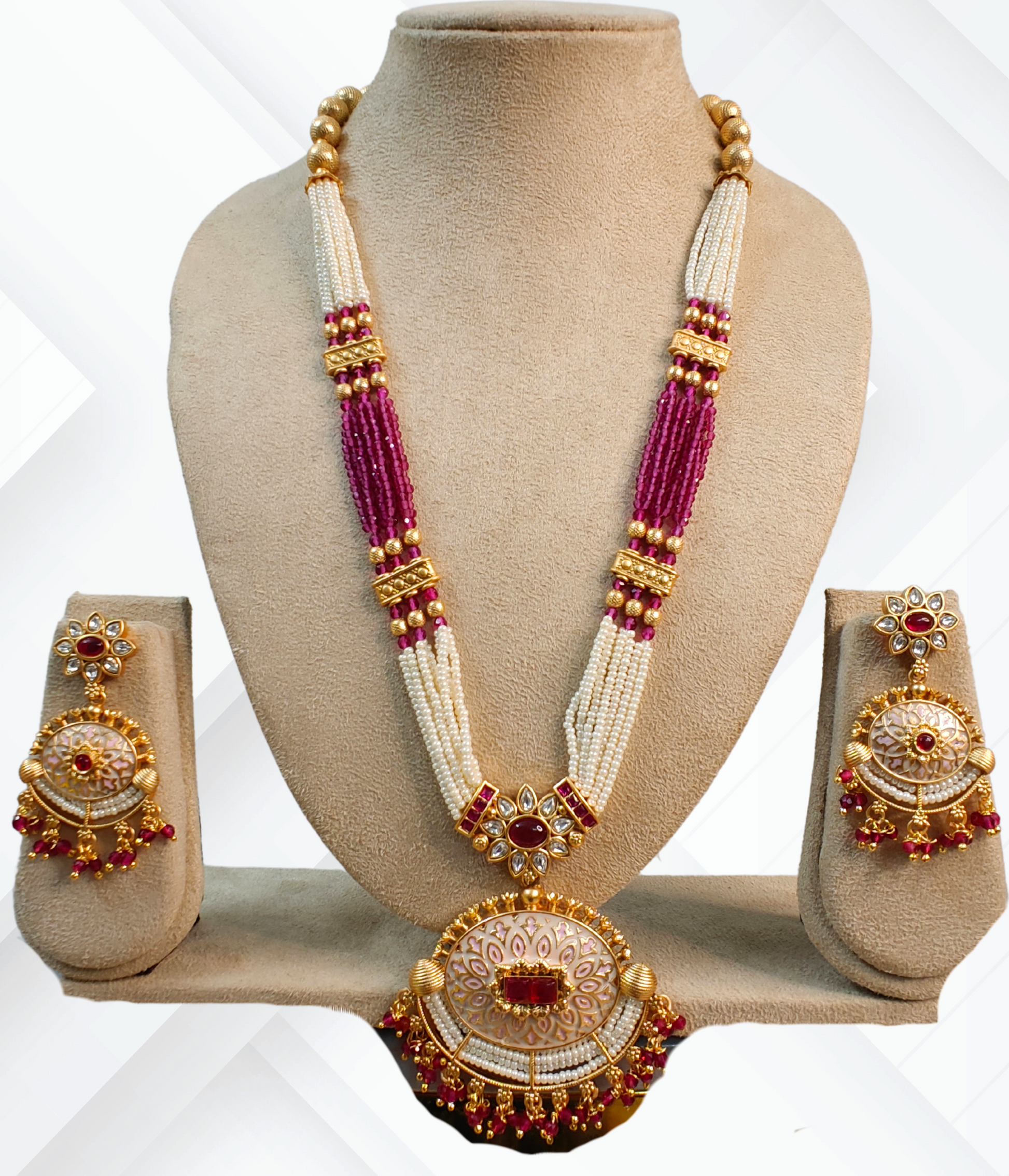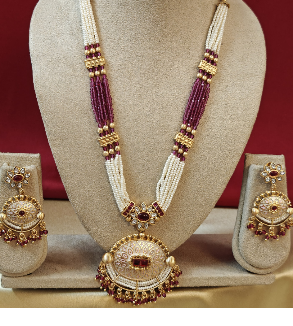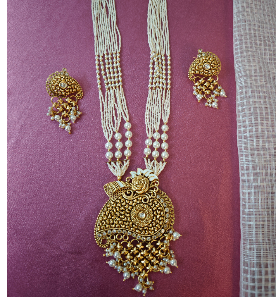 Whether worn with traditional attire for a lavish celebration or paired with contemporary couture for a modern twist, this royal jewellery set is sure to make a statement. With the undeniable charm of kundan and pearl embellishments, it embodies the dignity and poise of a true queen, ensuring that you shine bright in every setting.