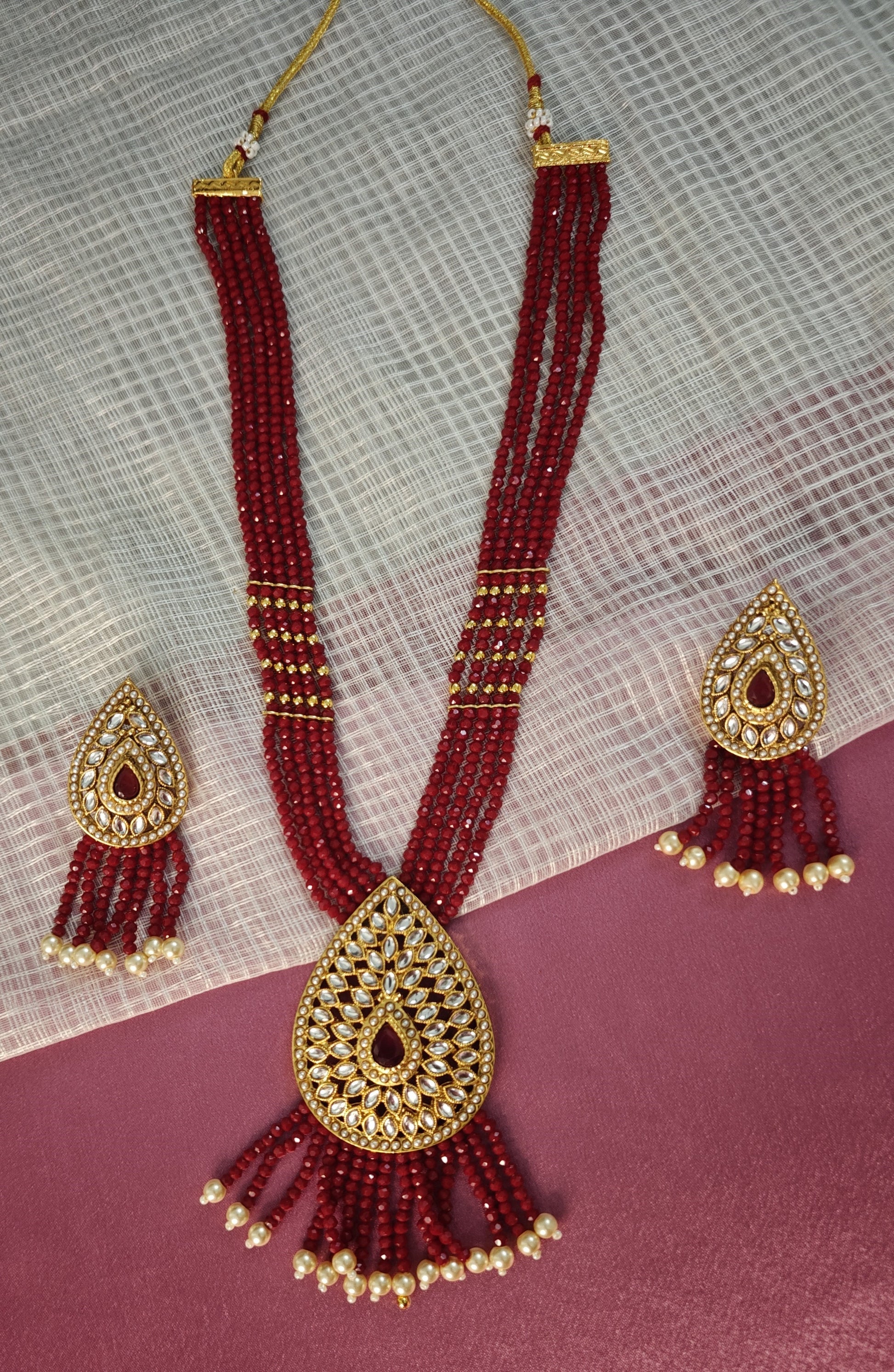 RED GRIVA PEARL MALA SET