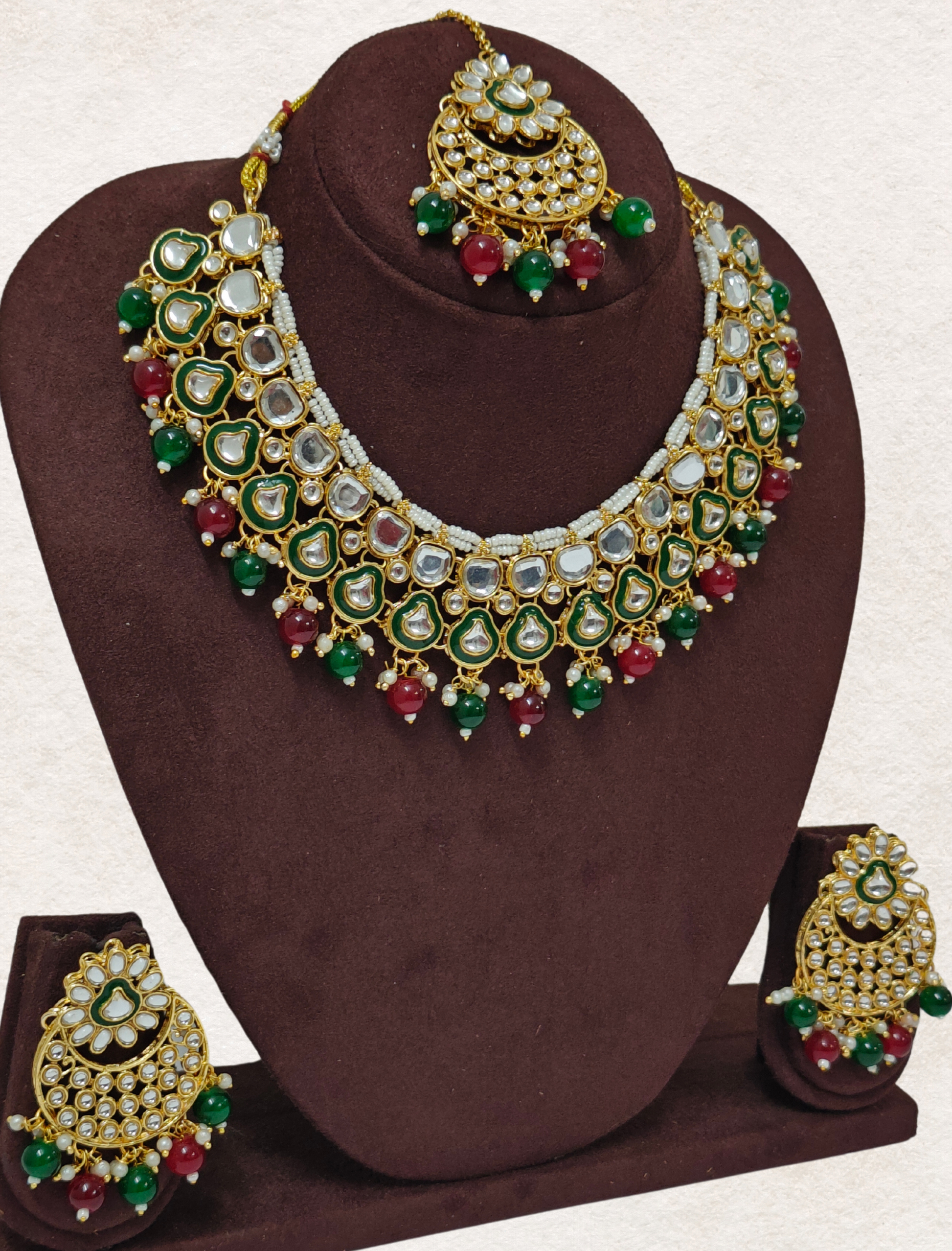 RUBY PINK AND GREEN ARIKA JEWELLERY SET