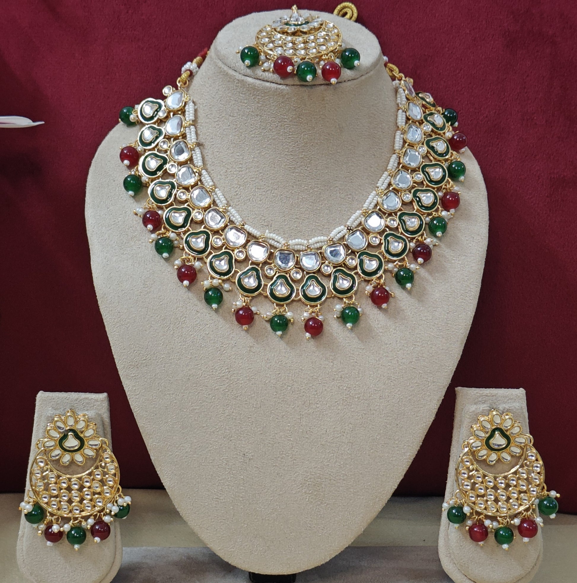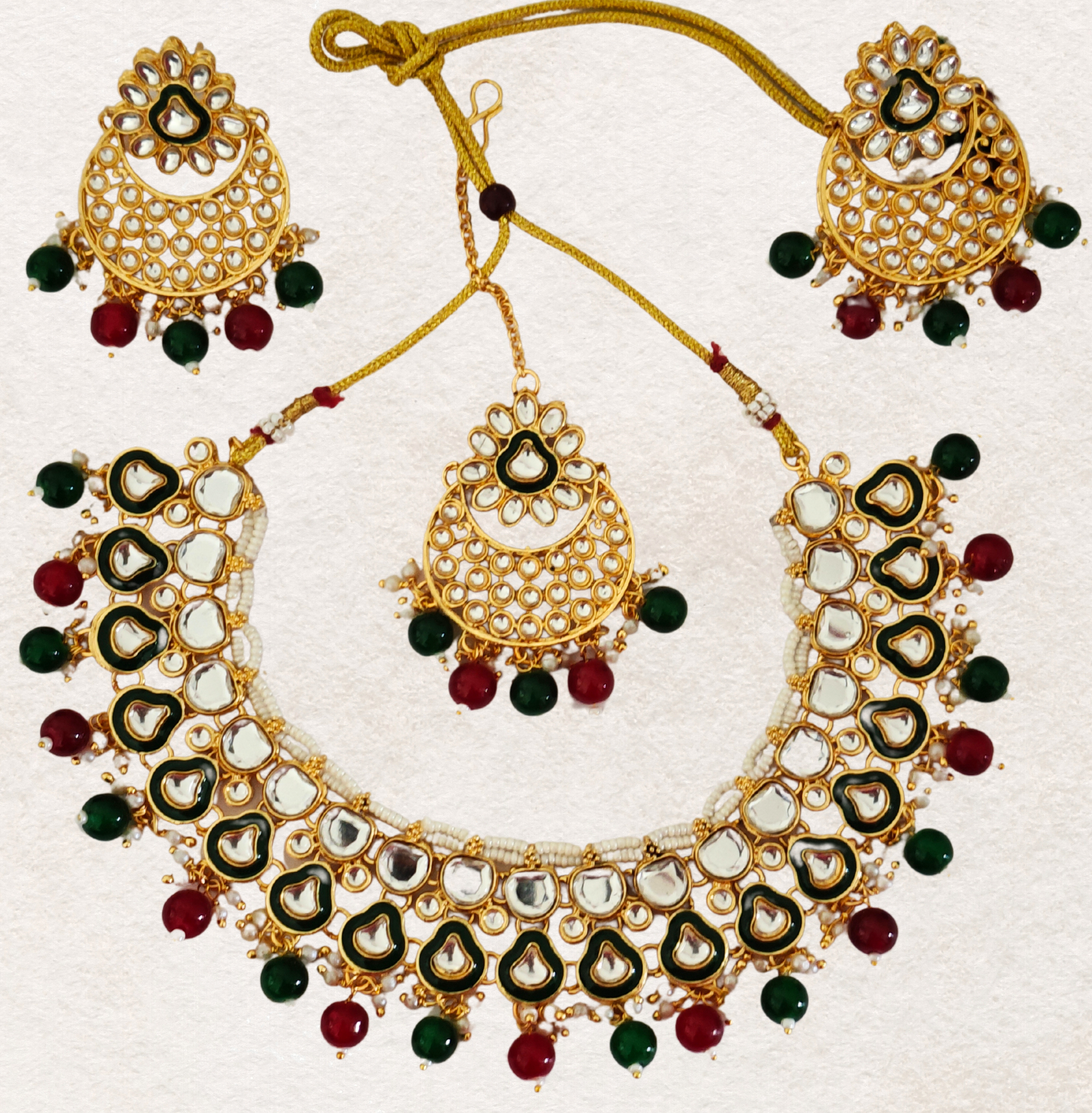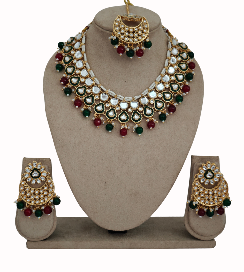 • Pack contains: 1 necklace, 1 pair of earrings and 1 Mangtika