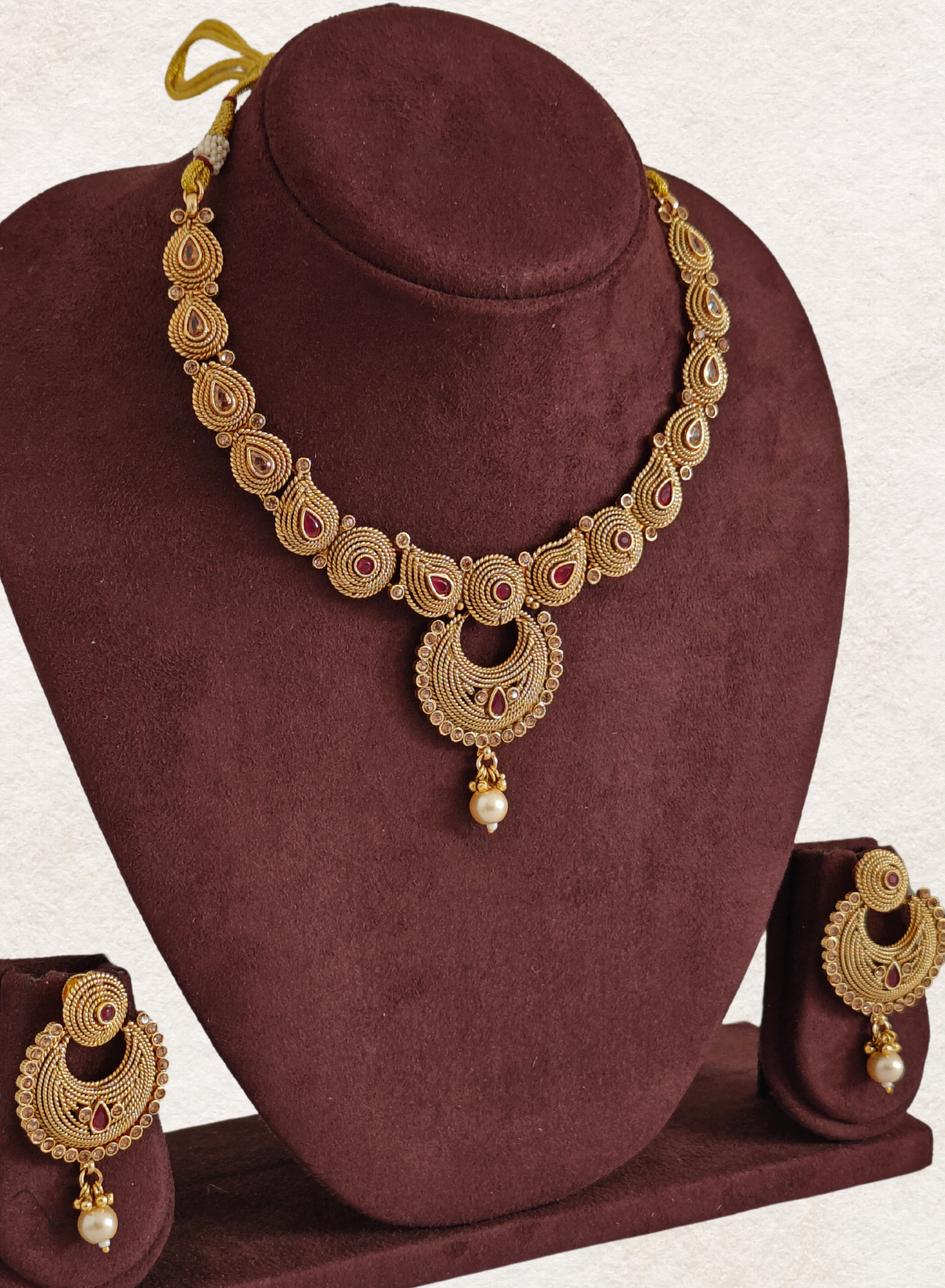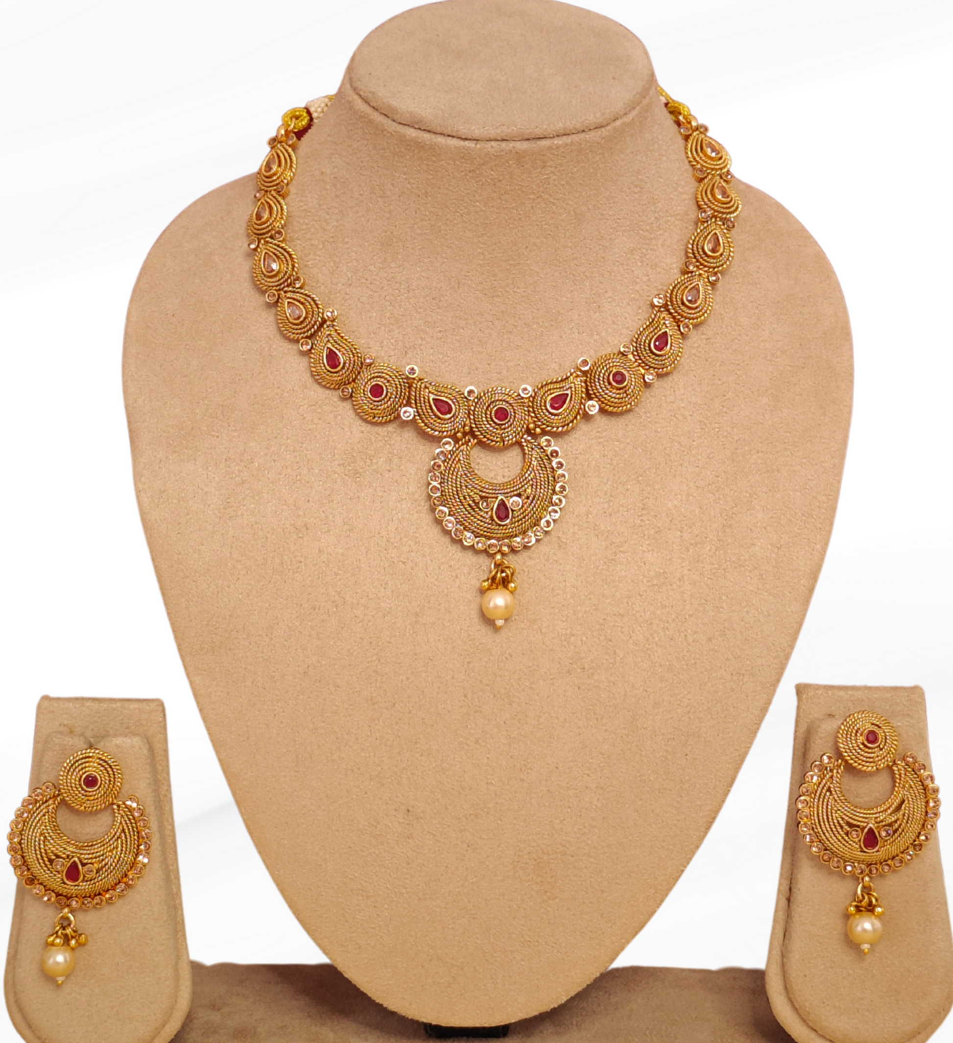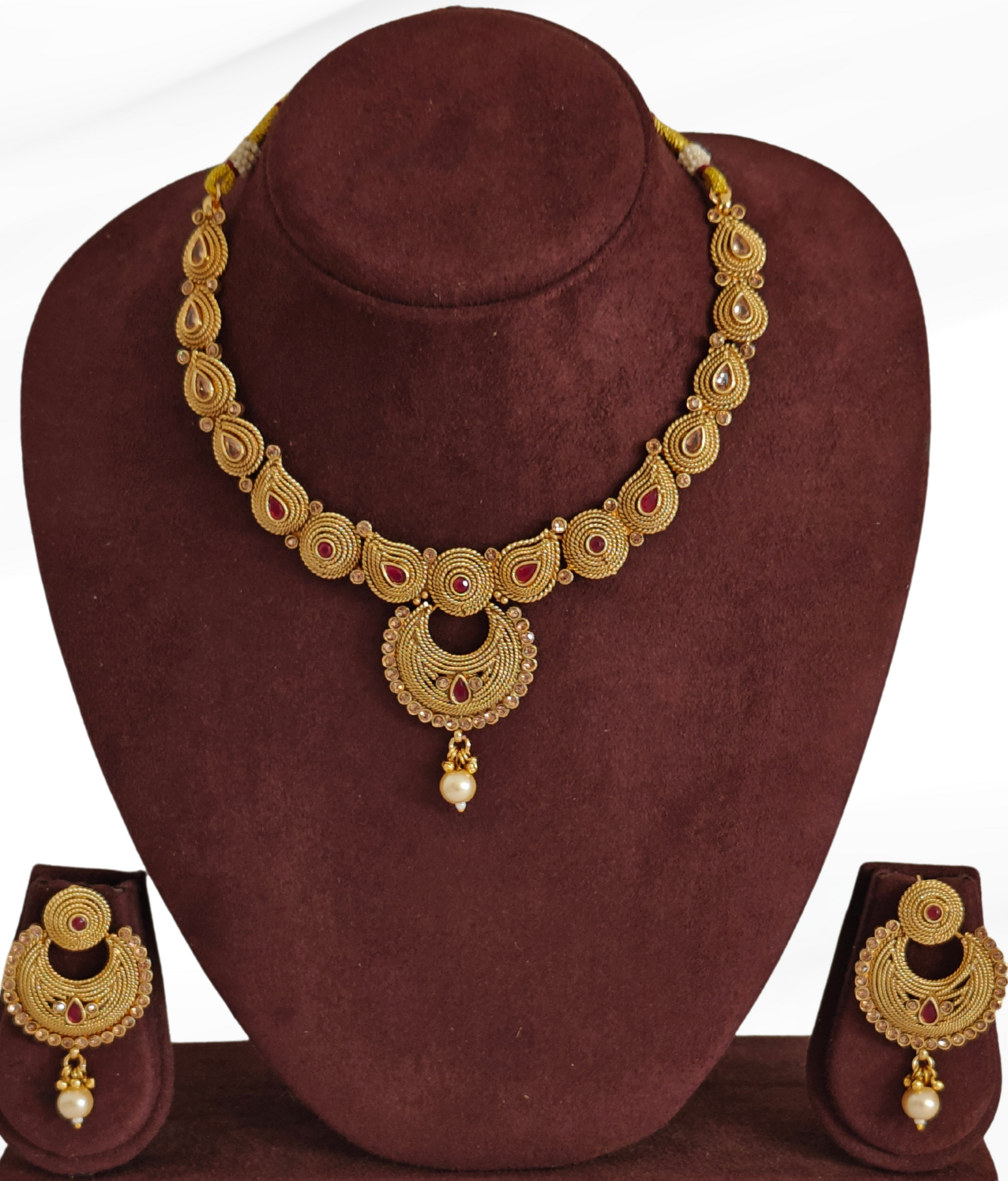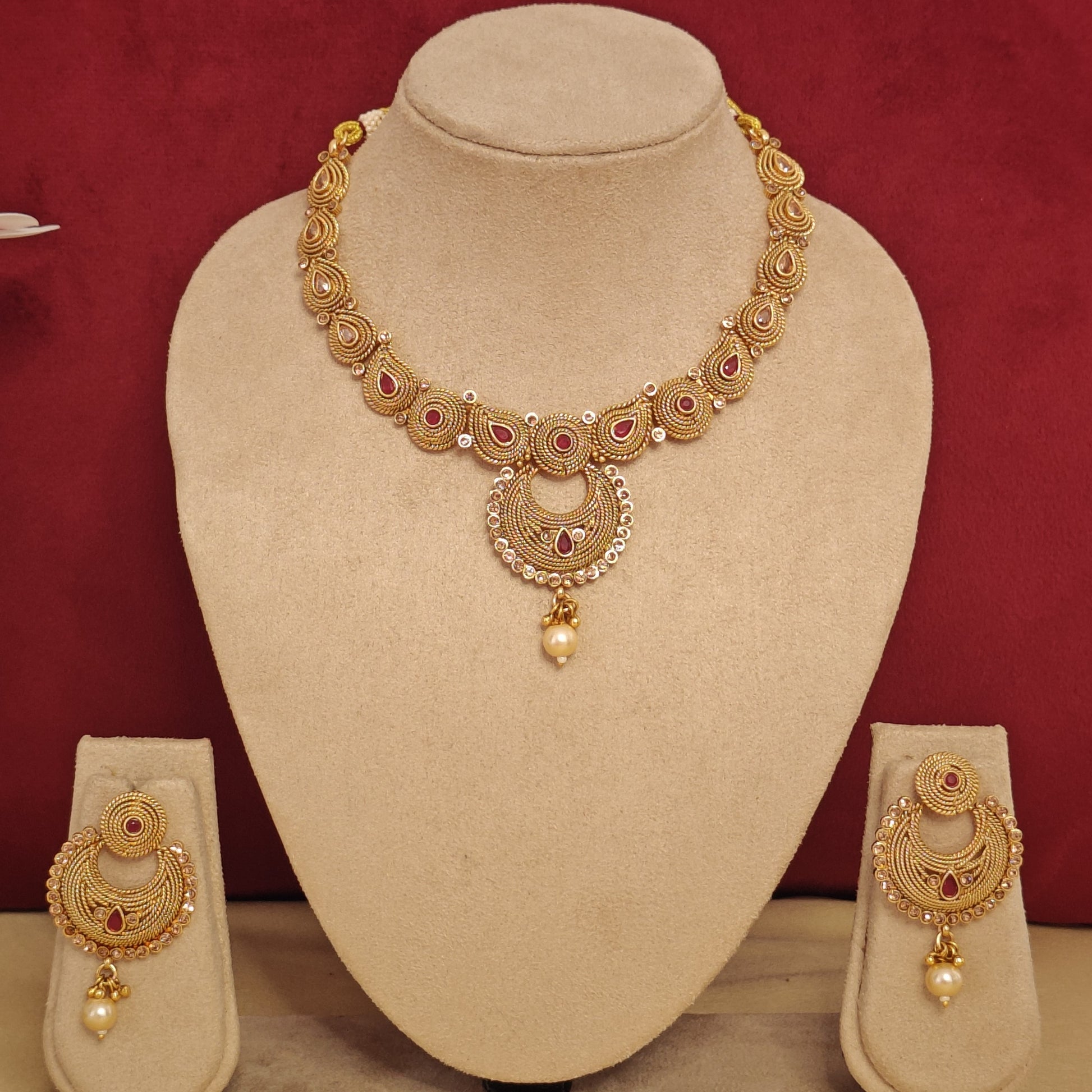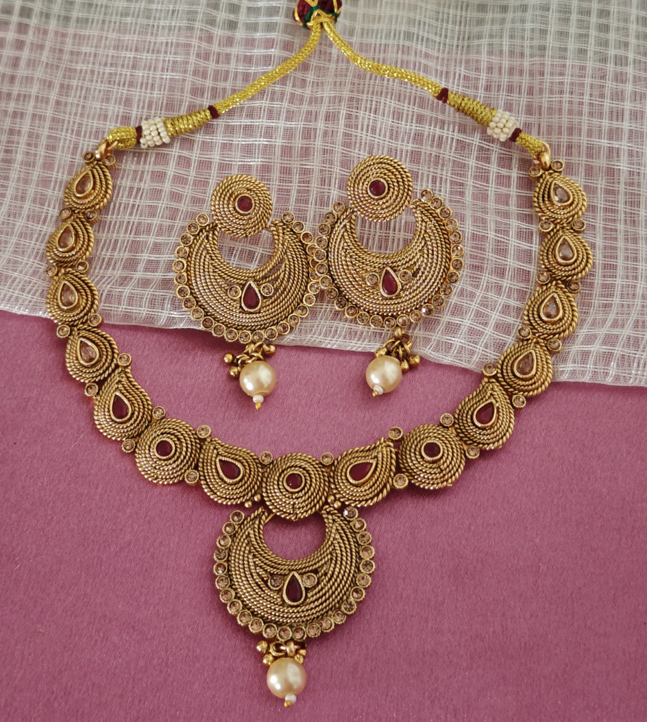 Indulge in the timeless elegance of this antique high gold-plated jewellery set. Each piece exudes classiness and charm, crafted with meticulous attention to detail. The radiant glow of the gold plating adds a touch of luxury, making this set a stunning addition to any ensemble.