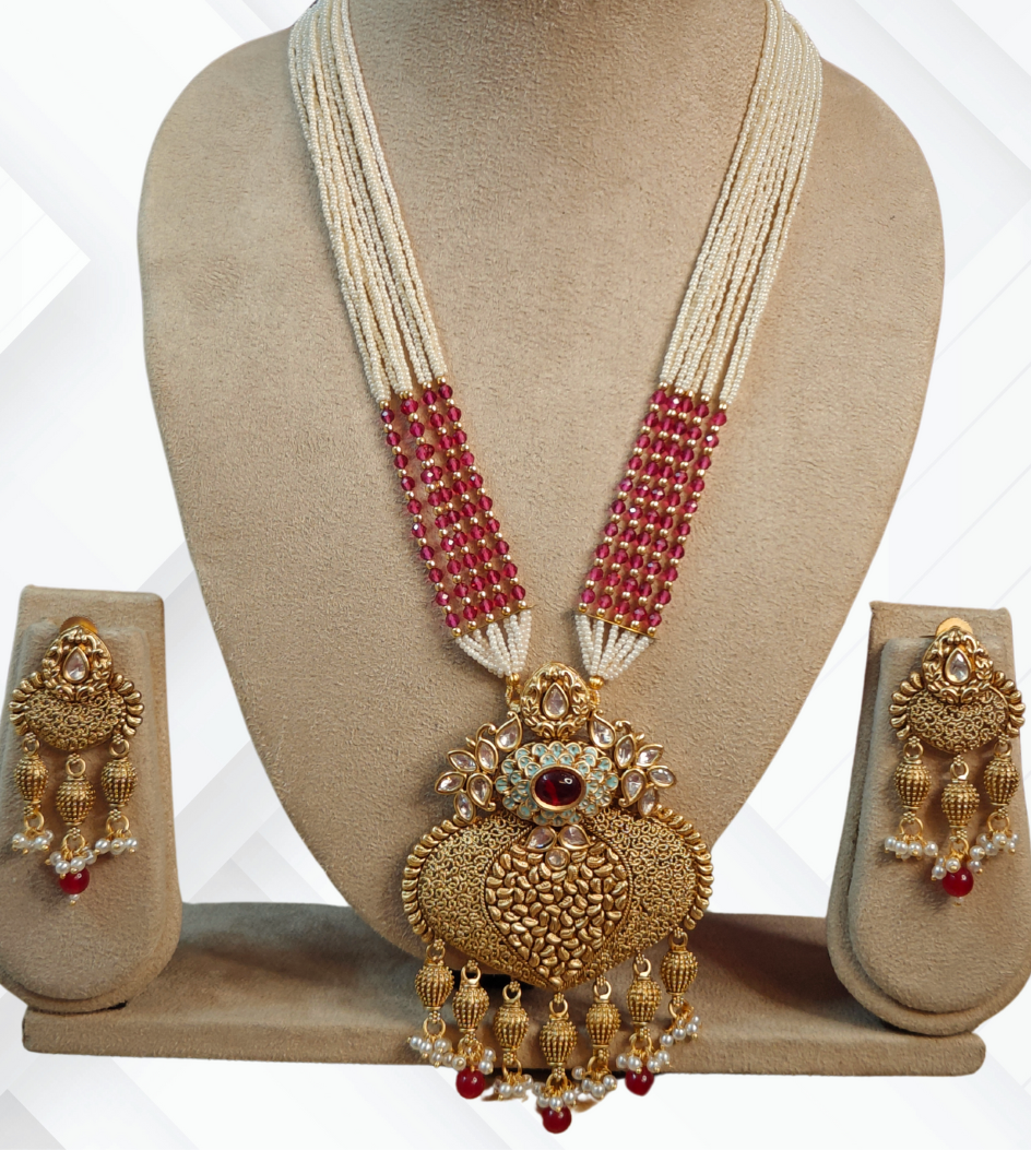 Whether worn with traditional attire for a lavish celebration or paired with contemporary couture for a modern twist, this royal jewellery set is sure to make a statement. With its undeniable charm, it embodies the dignity and poise of a true queen, ensuring that you shine bright in every setting.