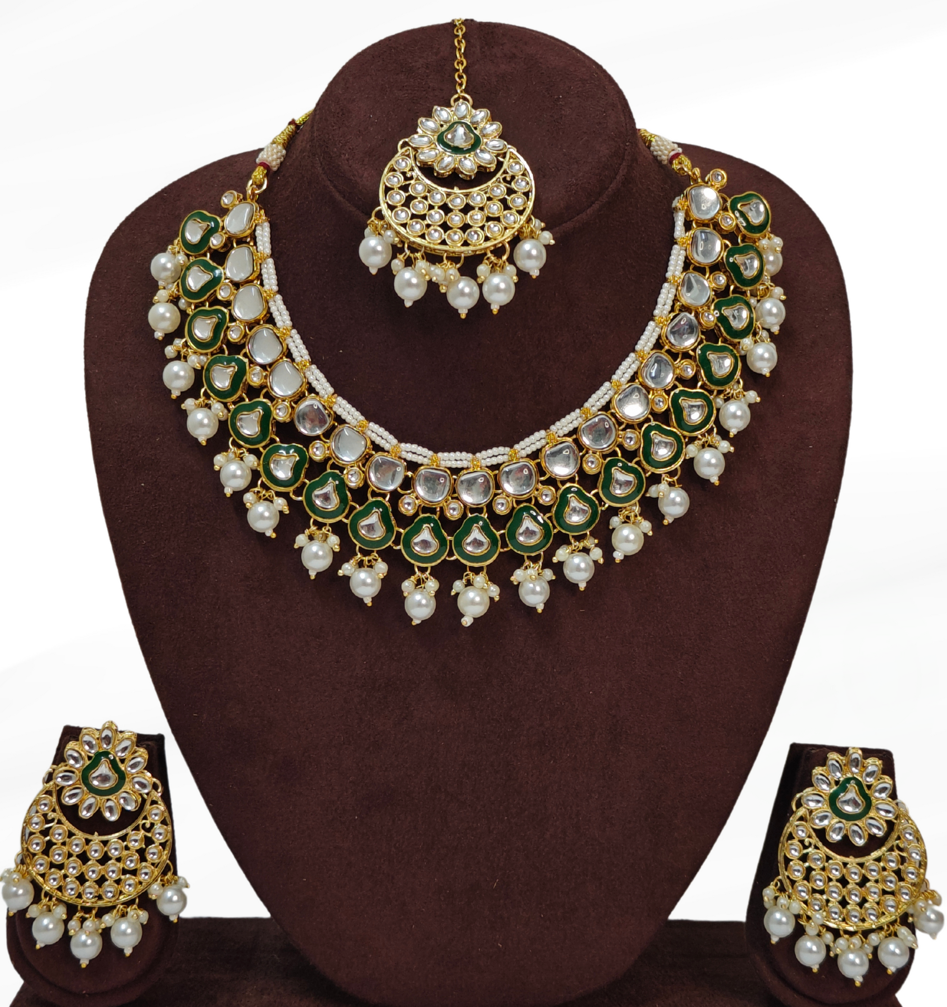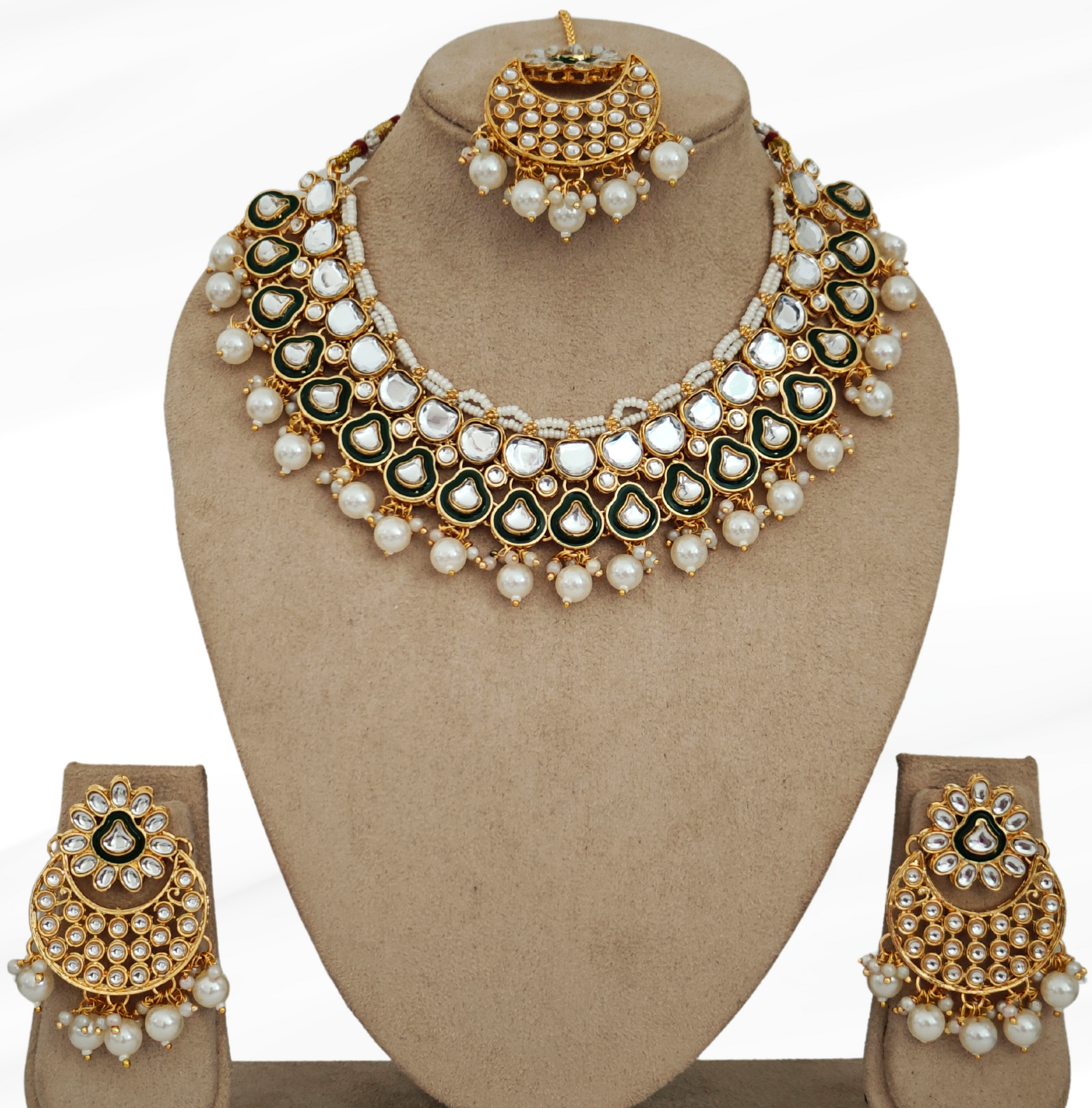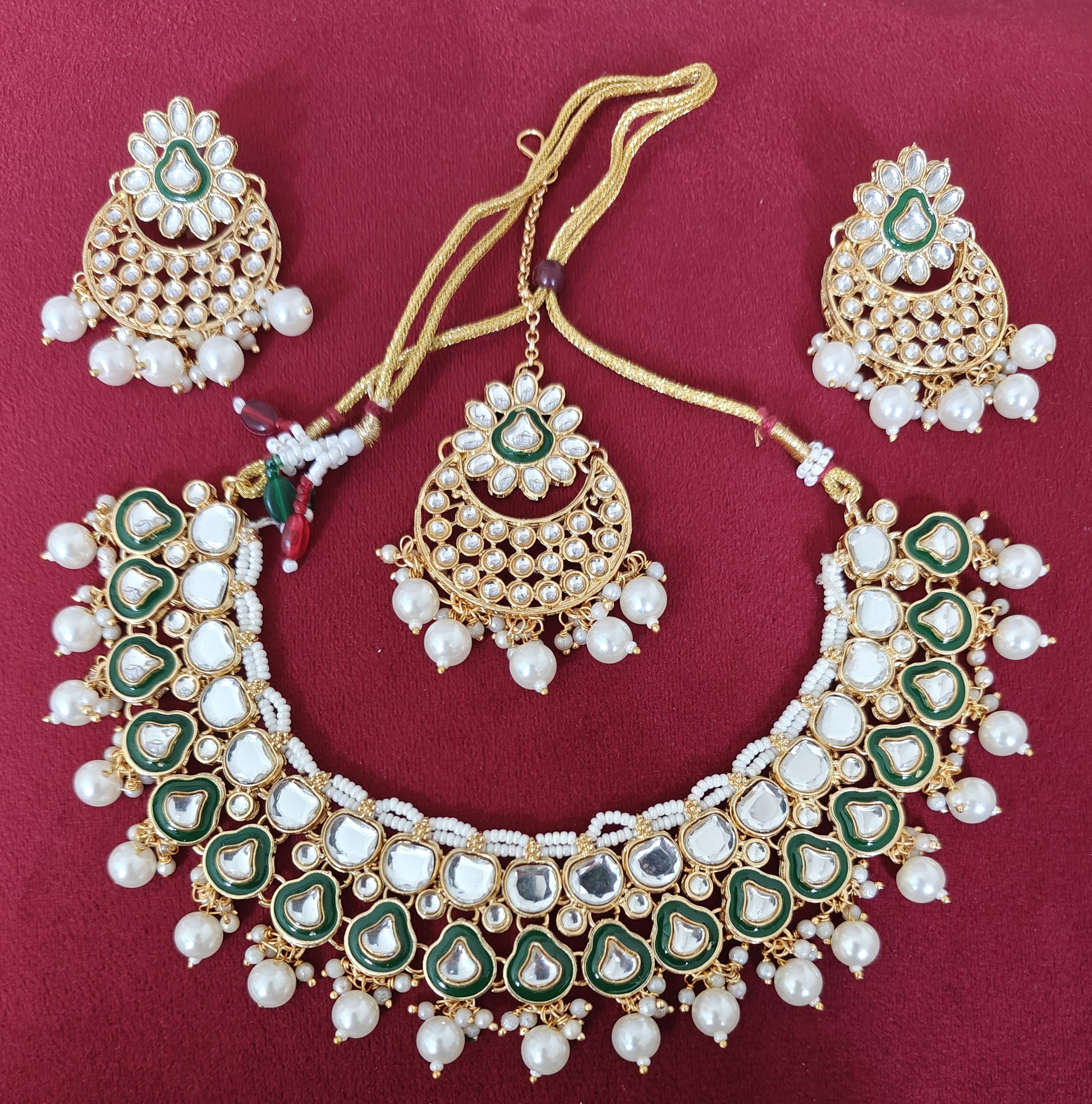 • Pack contains: 1 necklace, 1 pair of earrings and 1 Mangtika