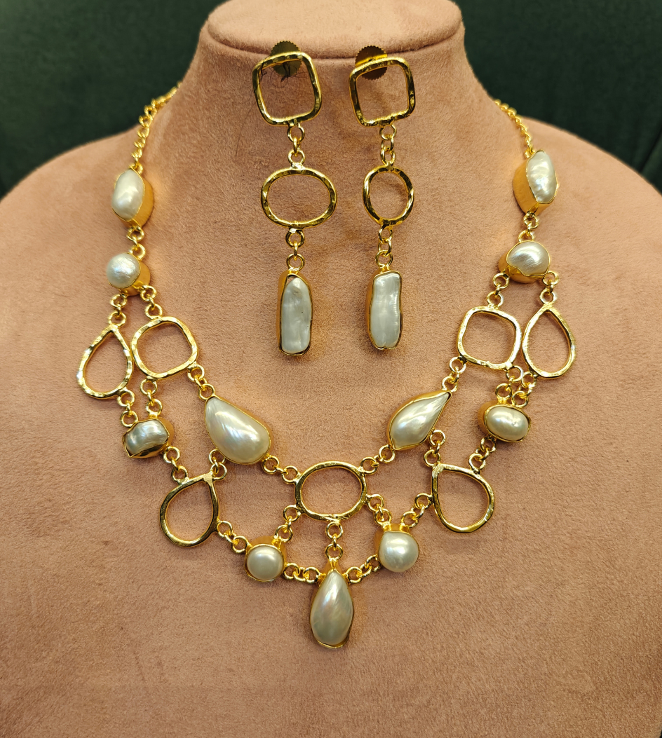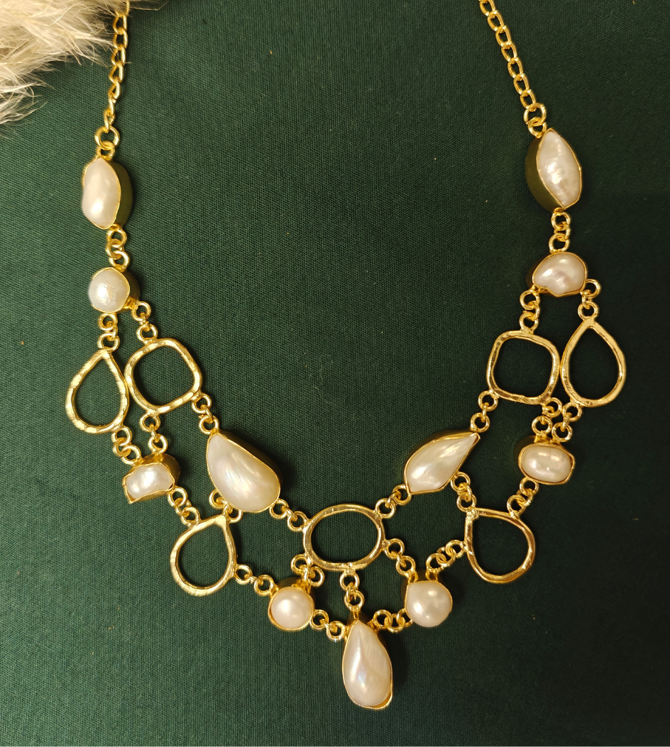 Soft tone of the pearls come together in this elegant piece, creating a look that’s both classic and modern. The gentle shine of each pearl adds a hint of luxury, while the layered style brings a graceful movement and charm. Whether it's a special day or a touch of everyday elegance, this piece feels effortlessly royal.