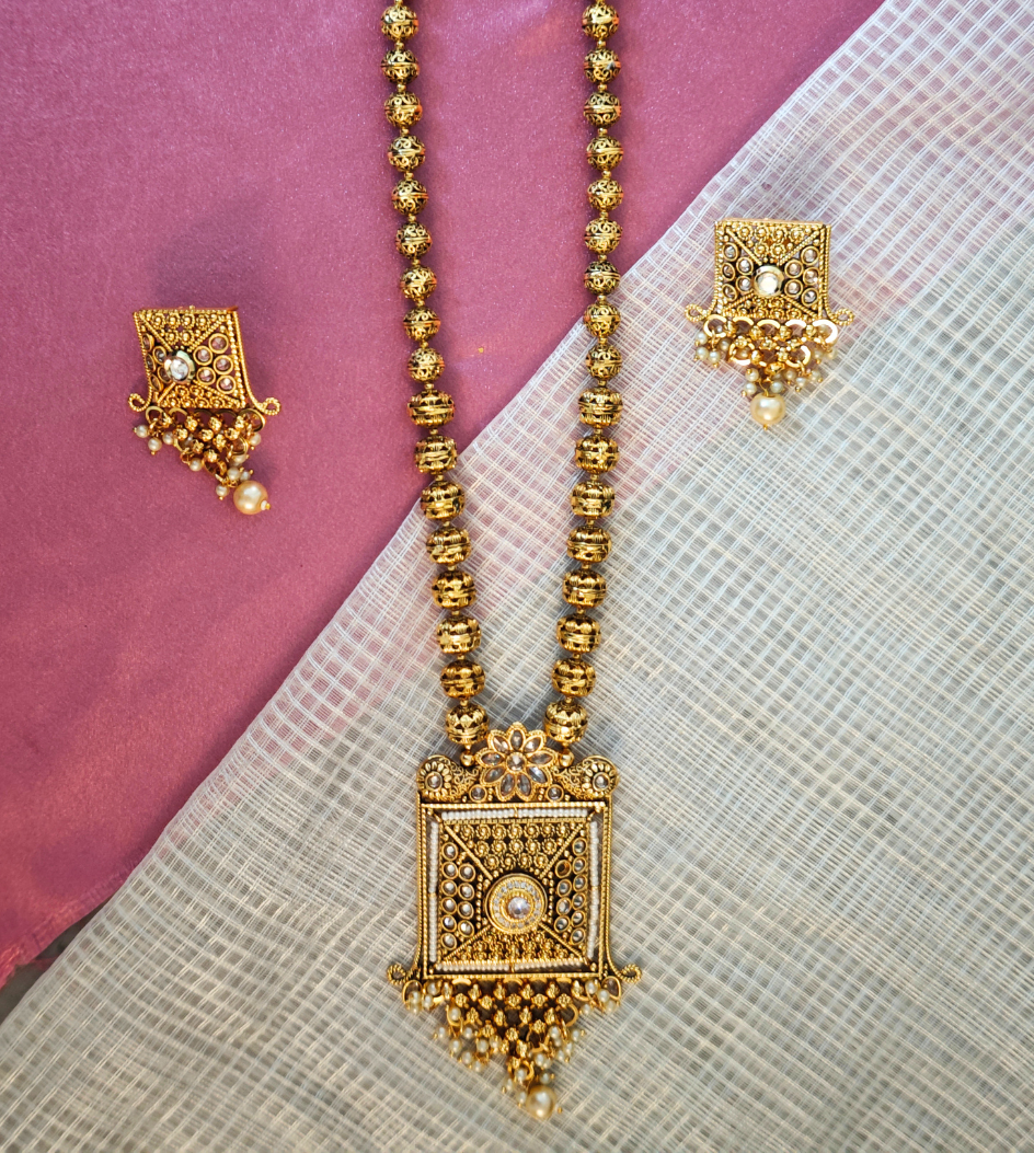 Whether worn with traditional attire for a lavish celebration or paired with contemporary couture for a modern twist, this royal jewellery set is sure to make a statement. With its undeniable charm, it embodies the dignity and poise of a true queen, ensuring that you shine bright in every setting.